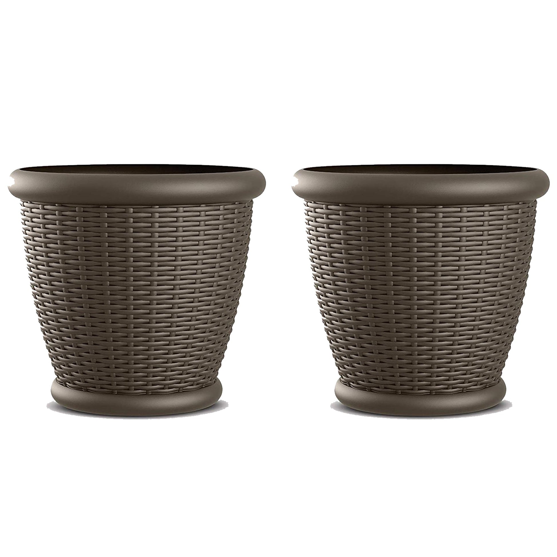 Suncast Willow 18" Diameter Decorative Wicker Patio Planter Pot, Java (2 Pack)