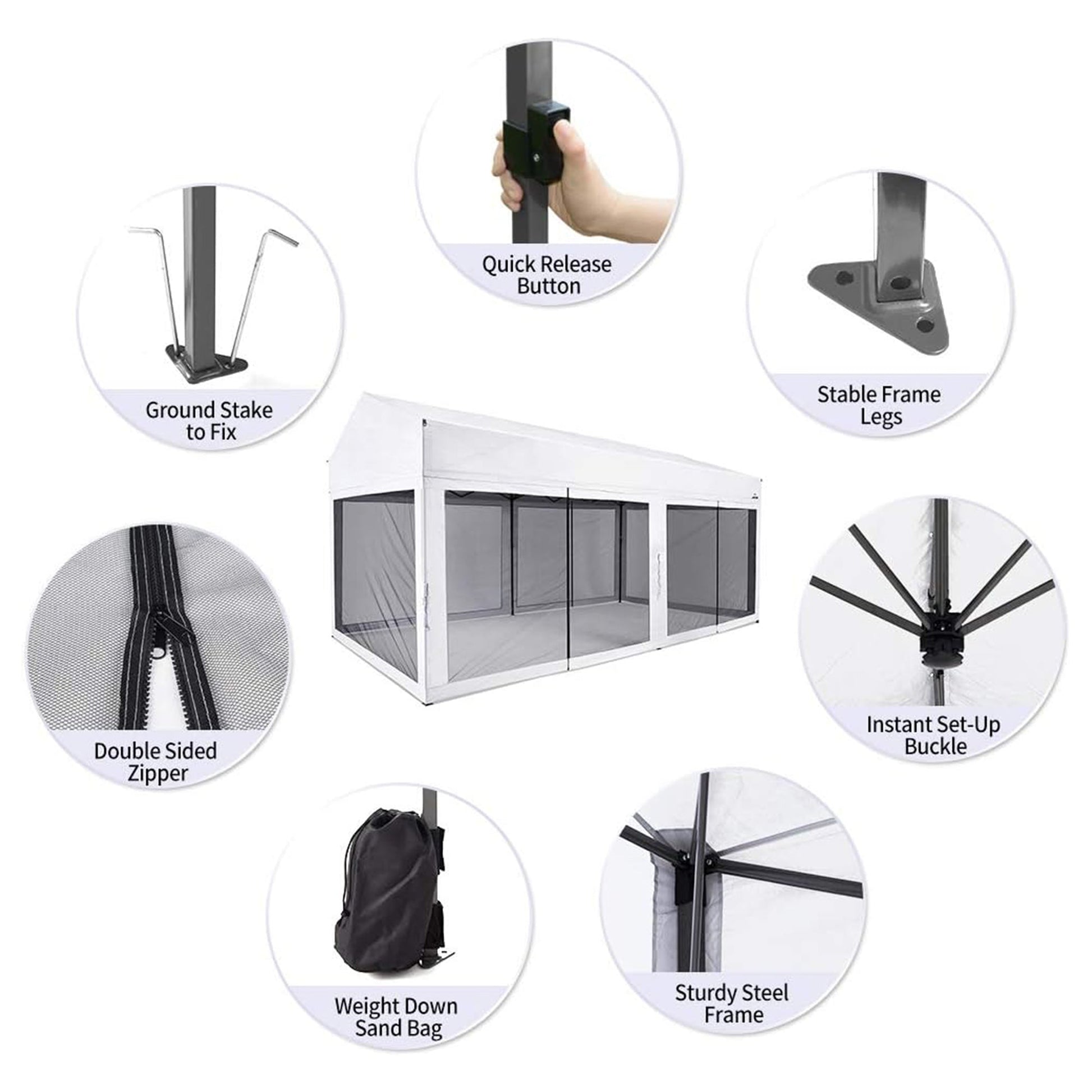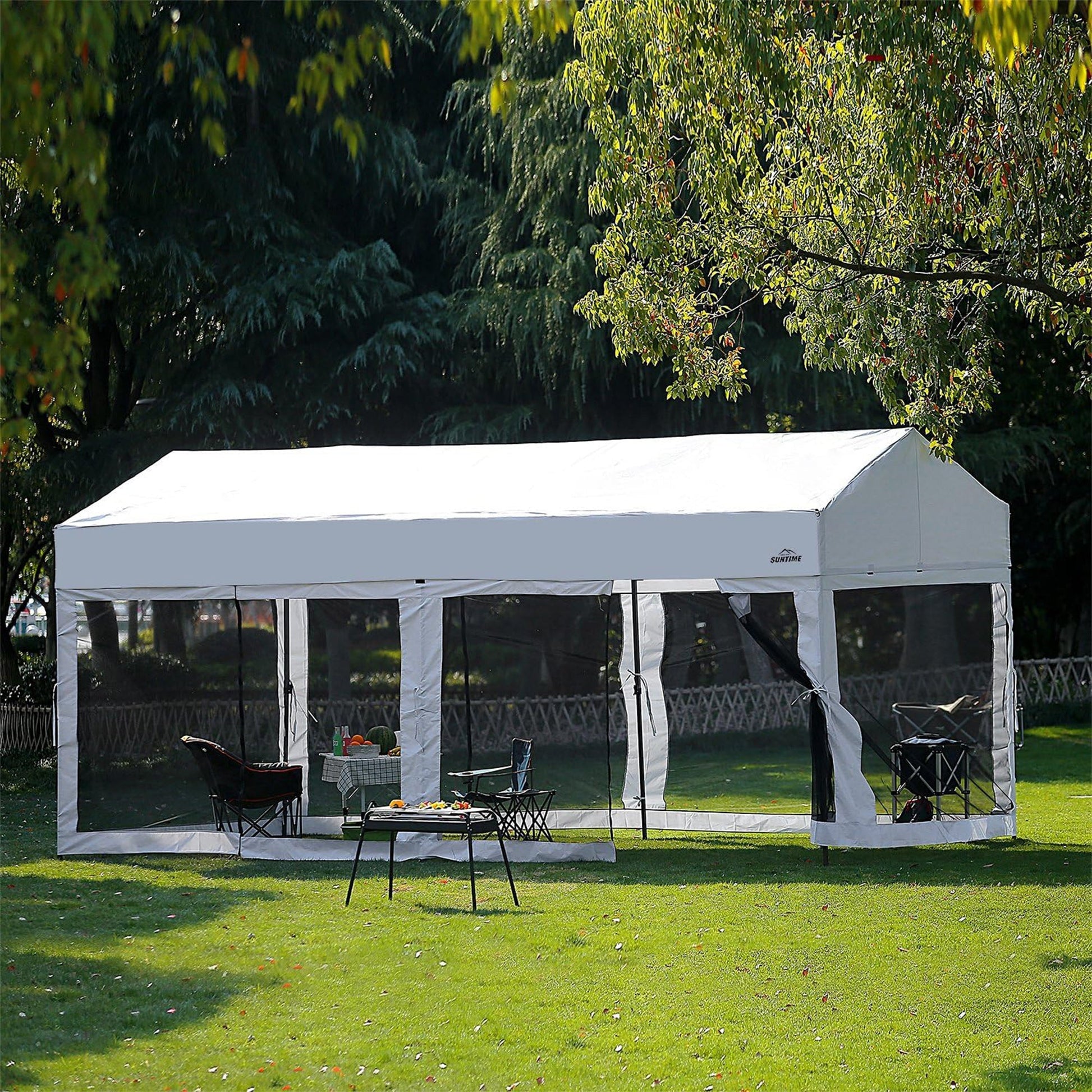 Suntime 10' x 20' Easy Pop Up Rectangular Canopy with Removable Sidewalls, White