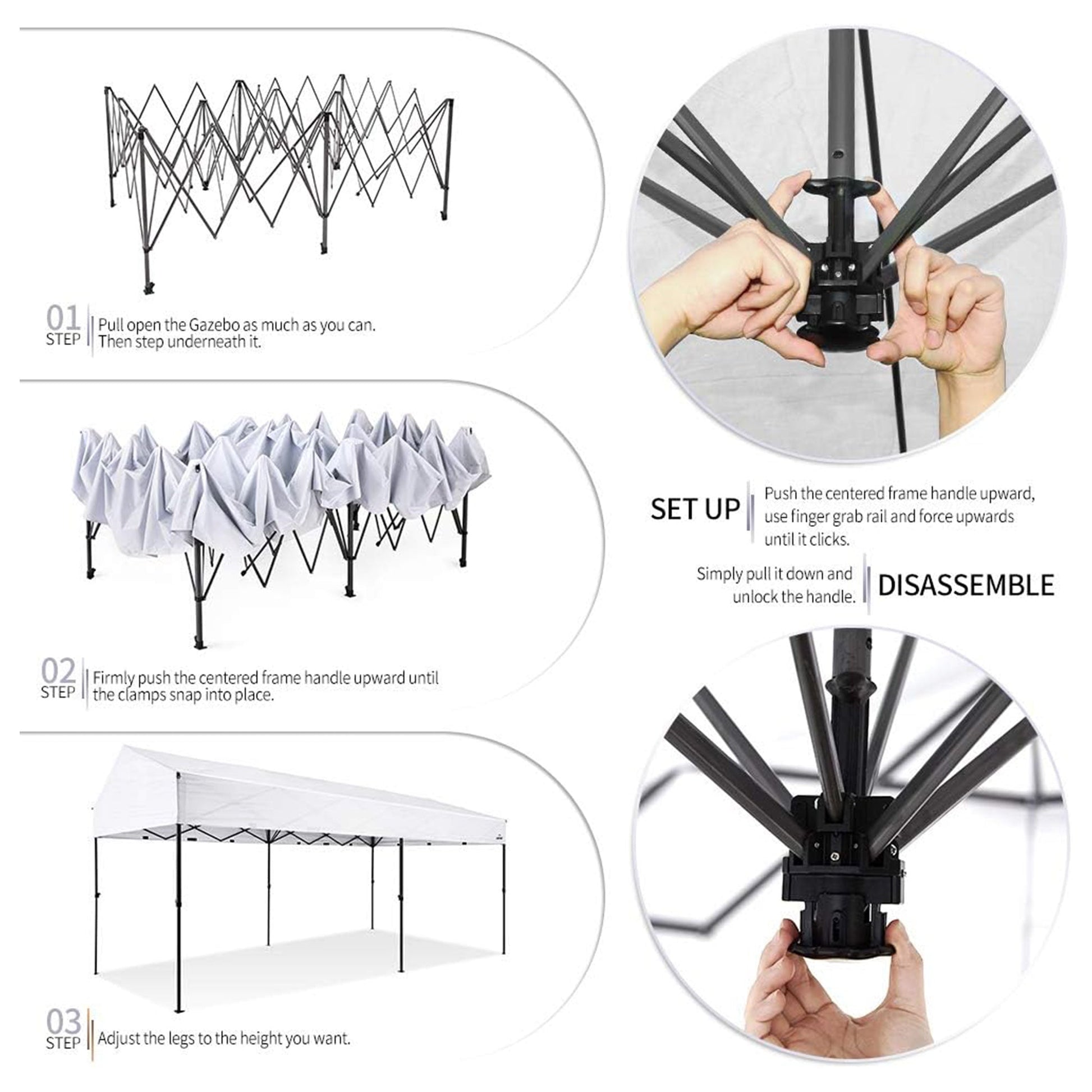 Crafted with precision and attention to detail, the pop-up tent boasts excellent sewing work, ensuring its durability and longevity. The frame is constructed from powder-coated steel with a 3-stage height adjustable design, for additional support and flexibility. Setting up this canopy is a breeze, thanks to its quick and easy assembly process. This outdoor party tent is highly flexible and portable, and a wheeled carrying bag is included for your convenience.