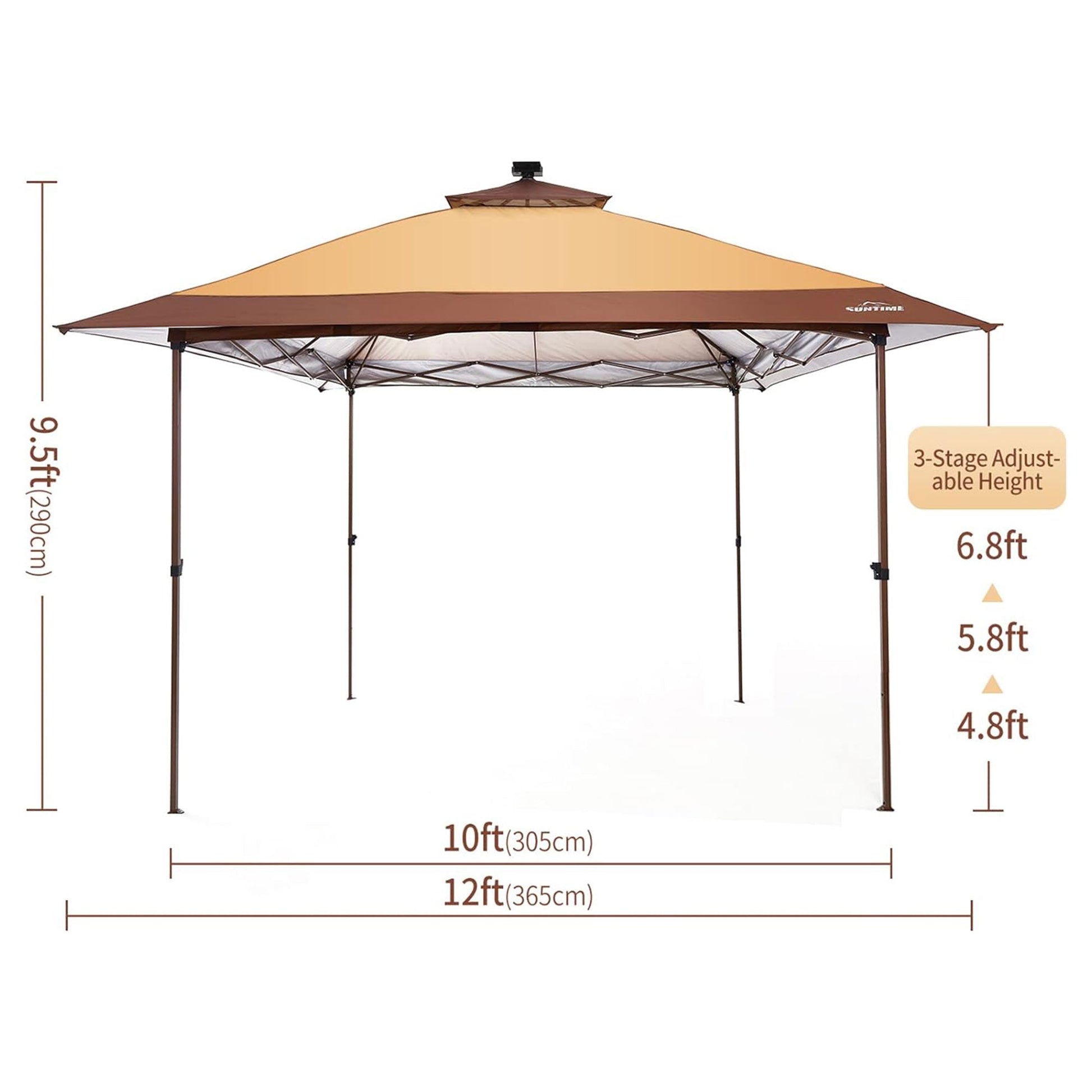 Suntime 12x12 Instant Pop Up Gazebo Solar Light Screen Canopy Tent Cover, Brown