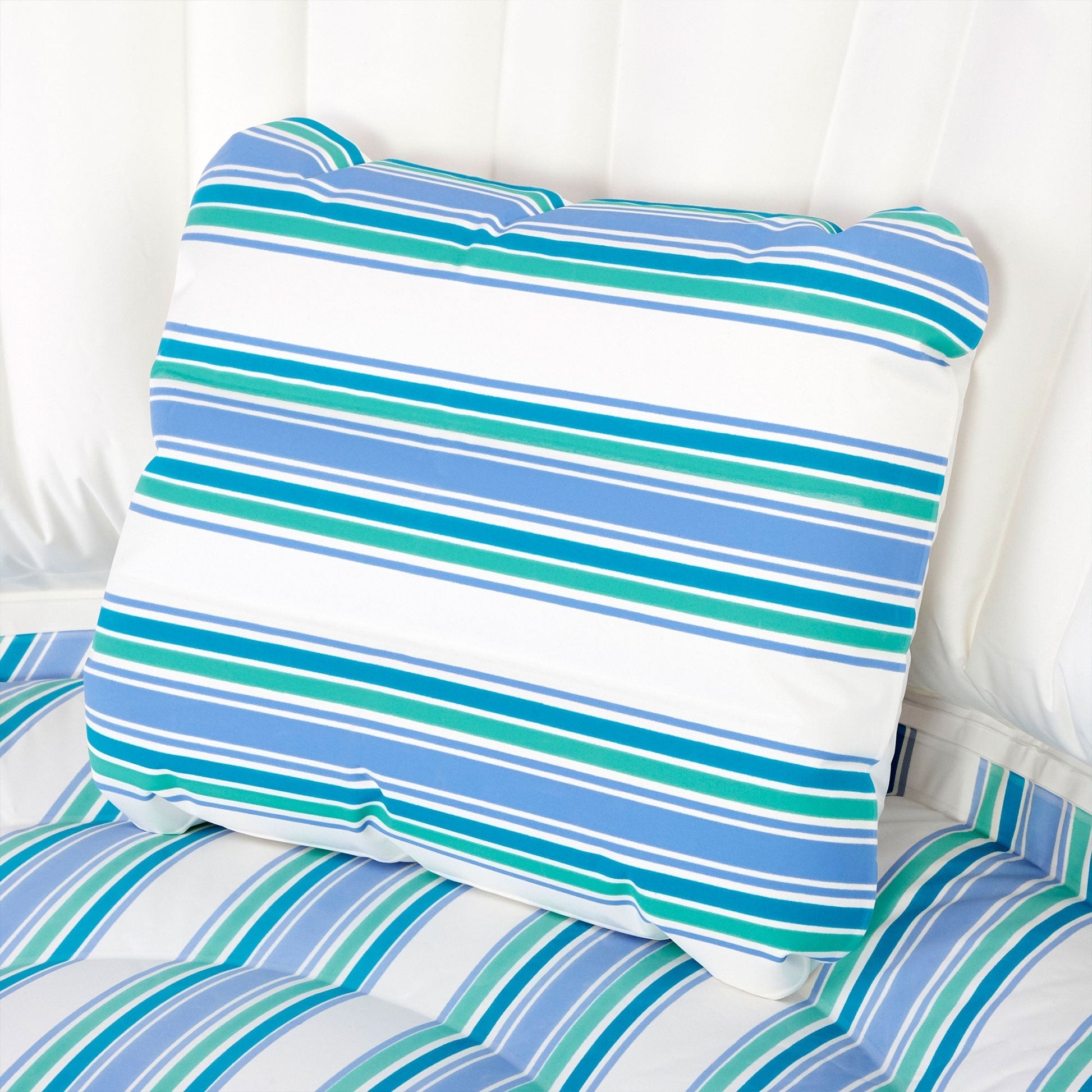 - Aqua sofa pool lounger features a soft fabric, ribbed base construction, and a high backrest designed for ultimate relaxation on the water