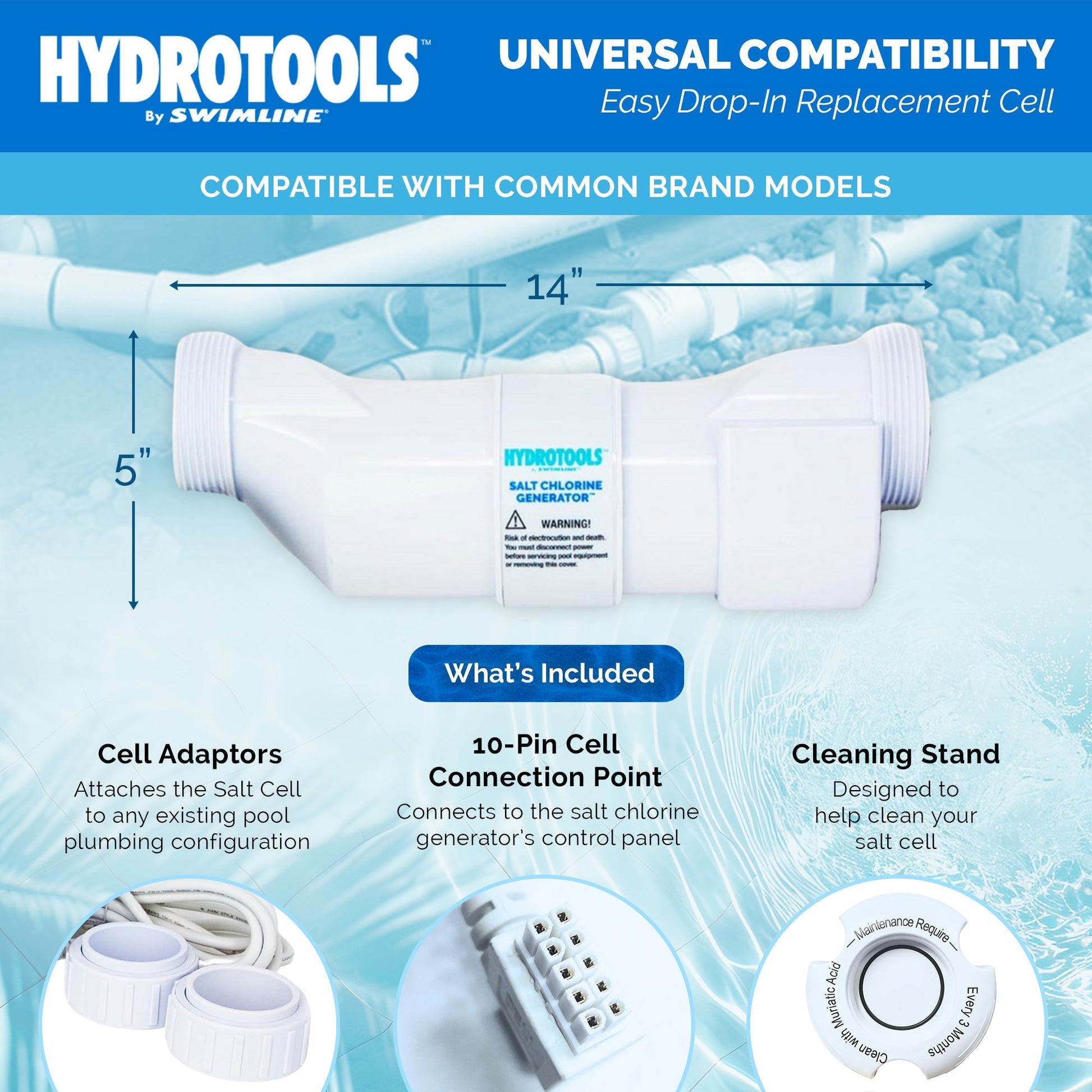 Installation is a breeze, as the replacement cells have been designed to be easy drop-in replacements for popular models like Hayward Salt systems. Included fittings make replacement quick and simple. Please note Hydrotools is an independently operated brand and has no association with other brands.