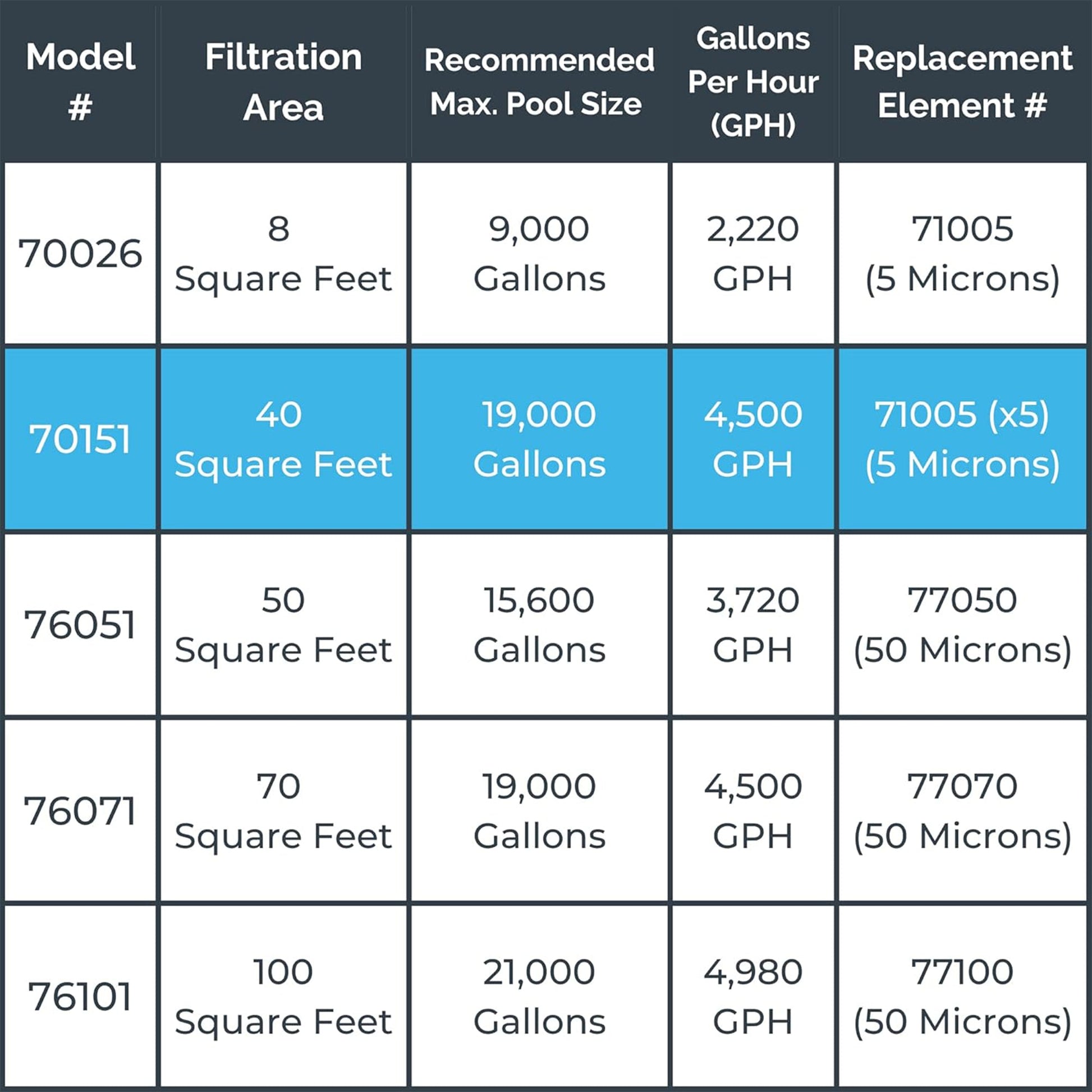 - Equipped with a 40-square-foot oversized filtration area and a 5-element cradle for superior water clarity, perfect for pools up to 19,000 gallons