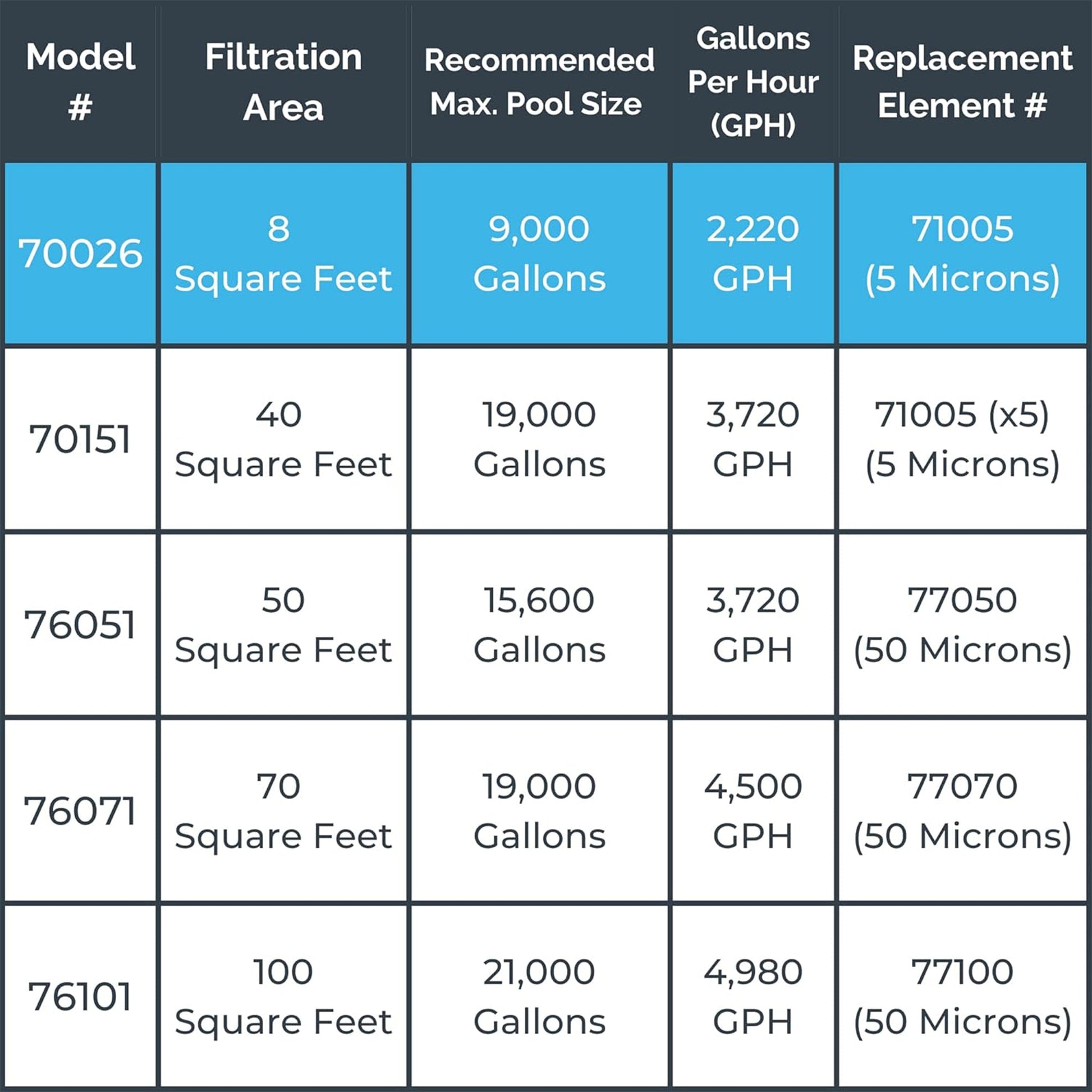 - Equipped with an 8-square-foot filtration area for pools up to 9,000 gallons