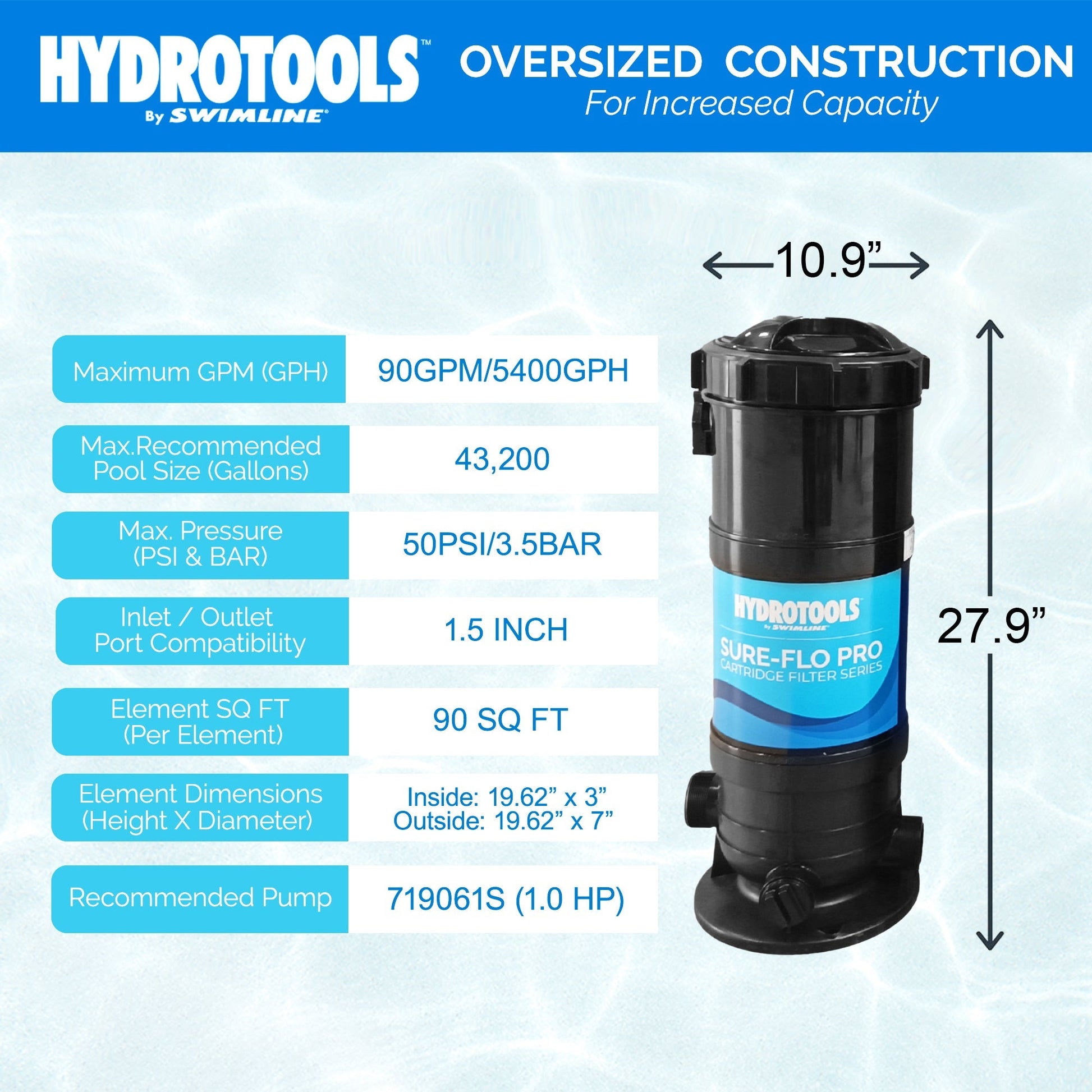 Elevate your pool experience with Hydrotools by Swimline SURE-FLO cartridge filters, where innovative design meets unparalleled reliability. Each cartridge filter tank is engineered to transform your pool into a haven of clarity and purity. Our commitment to quality material ensures each filter is robust enough to handle the rigors of any pool environment, seamlessly integrating durability with style.