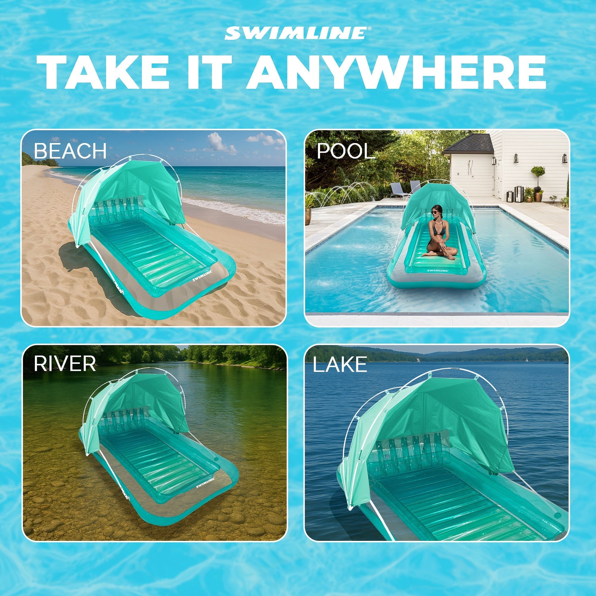 Swimline Original Inflatable Suntan Tub Lounge Float with Adjustable Shade, Mint
