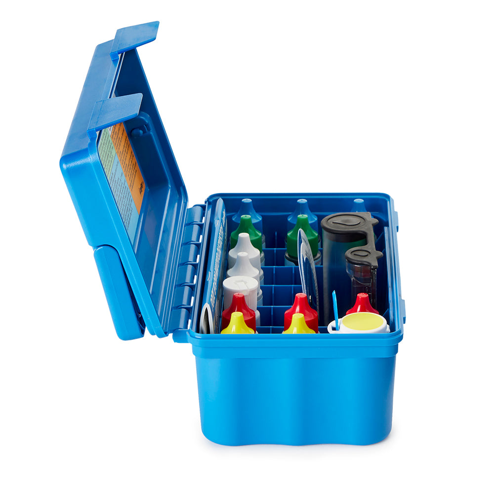 - Includes 0.75-ounce reagents, water comparator, water balance calculator wheel, and a heavy-duty carrying case