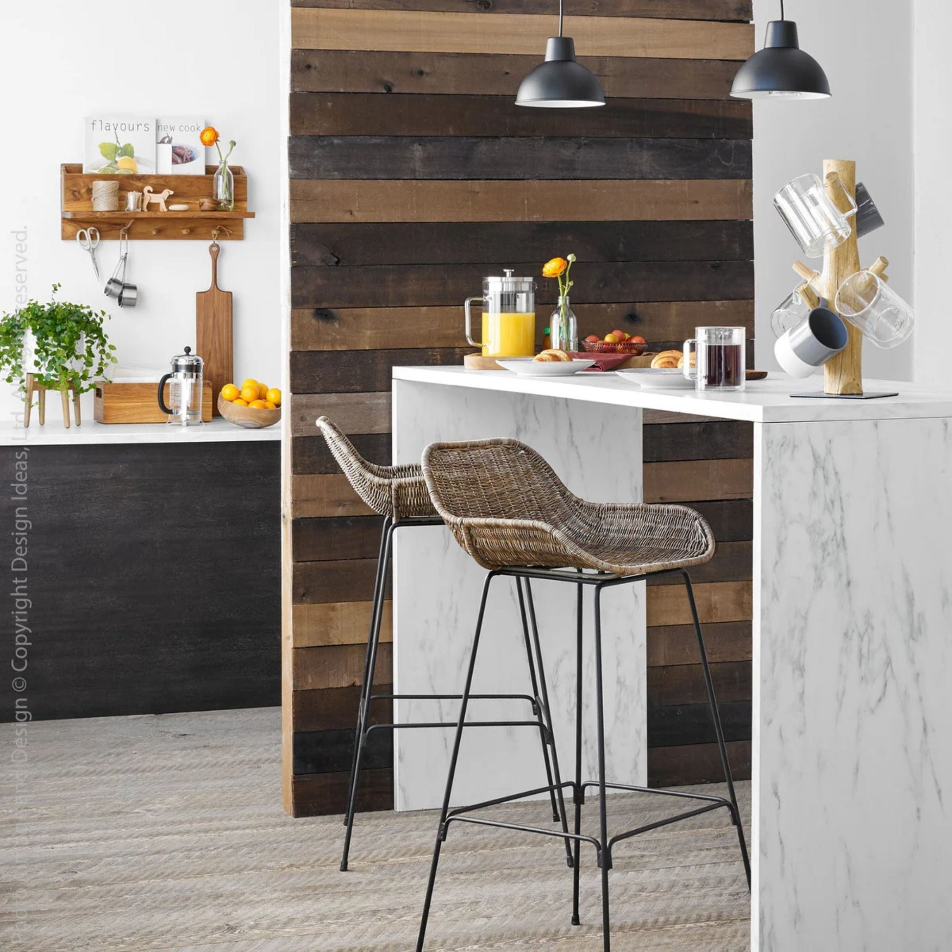 Elevate your home meal experience with the Ormond Rattan Bar Stools. Their natural, hand-woven aesthetic and modern silhouette will instantly transform any space into a chic, inviting oasis. Pair them with a cozy throw or plush cushion for added comfort, or let them stand alone as a striking focal point in your outdoor decor.