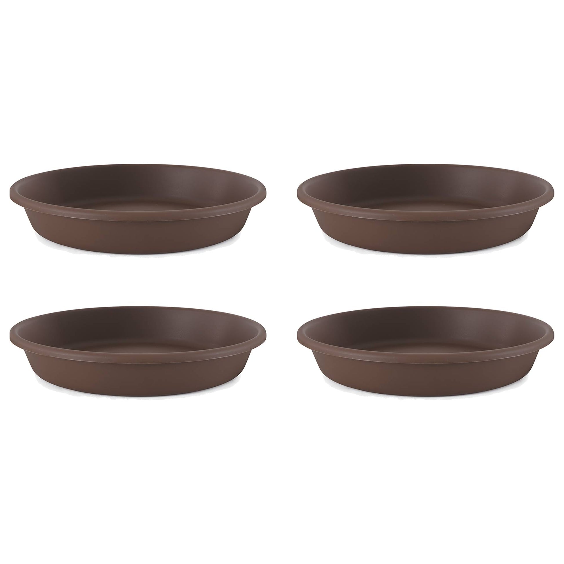 The HC Companies Classic 21" Deep Plastic Round Plant Pot Saucer, Brown (4 Pack)