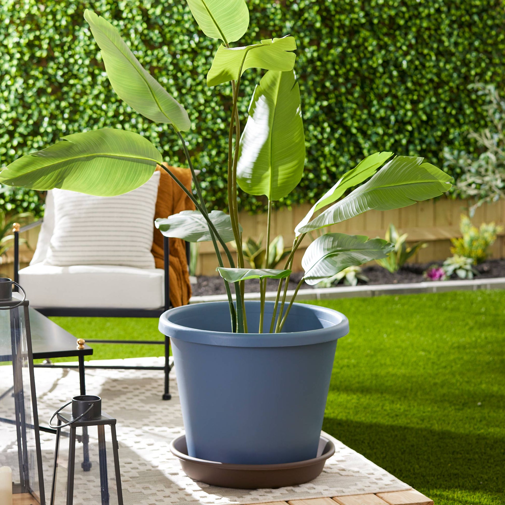 Measuring 21 inches in diameter, this round flower pot saucer is specifically crafted to accommodate round flower pots with matching 21-inch base diameters. Its interior features ridges that elevate the flower pot, facilitating moisture drainage, while the high sides effectively contain excess moisture. Moreover, the saucer is equipped with removable drain plugs for easy disposal of excess water. Ideal for both indoor and outdoor use, its classic design seamlessly complements various indoor decors, ranging from farmhouse to modern aesthetics. Crafted from durable yet lightweight plastic, this saucer is built to withstand wear and tear, ensuring resistance against color fading, leaking, and cracking, making it a reliable choice for both indoor and outdoor settings.