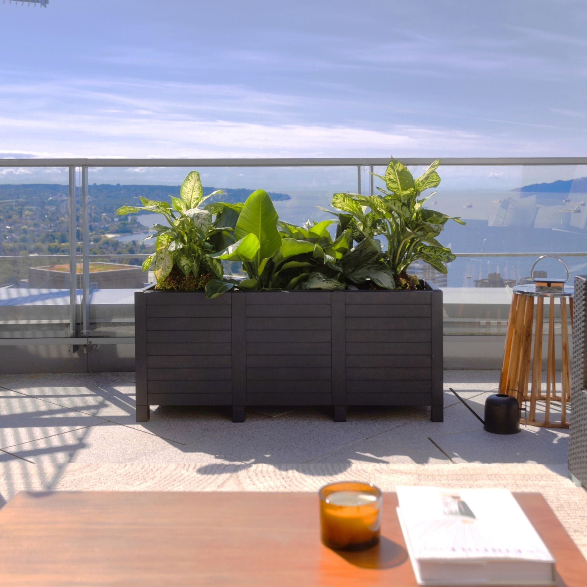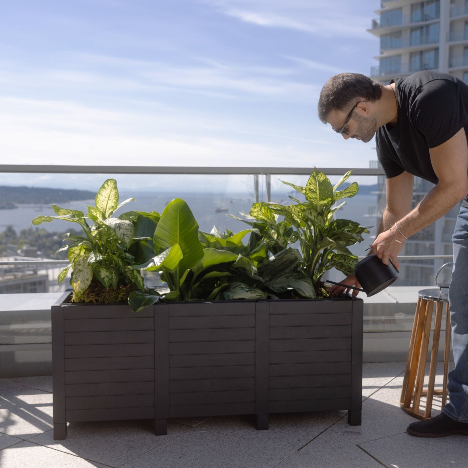- 17-inch by 48-inch Raised Garden Trough Box adds a sleek, contemporary touch to patios, balconies, decks, or indoor spaces