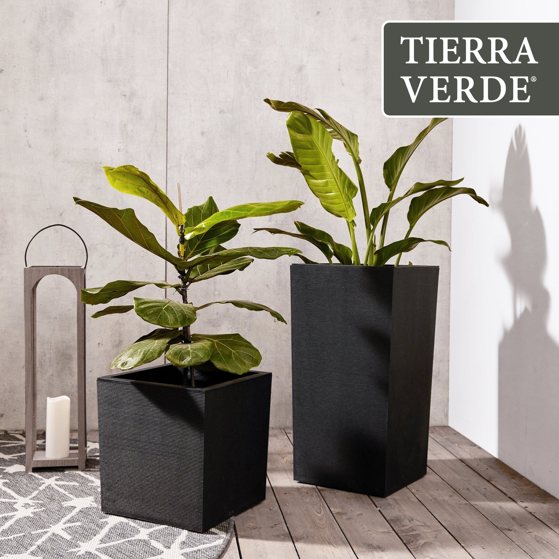 Dress up your entryway, patio, deck, or any outdoor living space with the Tierra Verde 26-inch Citadel Horizon Self-Watering Large Square Planter in Black. Crafted from durable, recycled materials, this planter helps you create a lush, green environment while contributing to reducing waste. Its sleek, black finish and straight, tapered profile make it a stylish choice for modern patios, decks, or entryways, blending effortlessly into any decor.