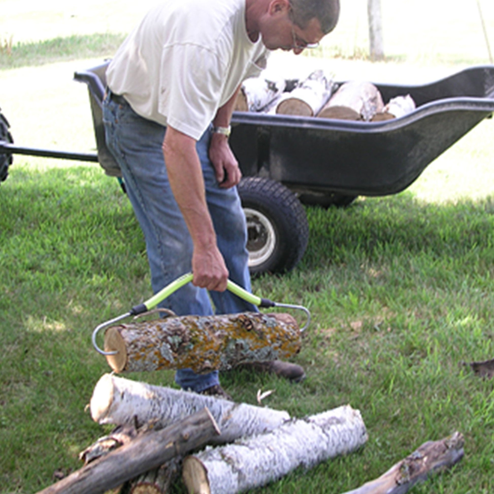 Featuring 2 sharp hooks, the Timber Claw pierces each end of the log, allowing you to easily pick up the log from the comfort-grip handle. The Timber Claw can handle split and non-split logs from 18 to 24 inches long and up to 50 pounds.