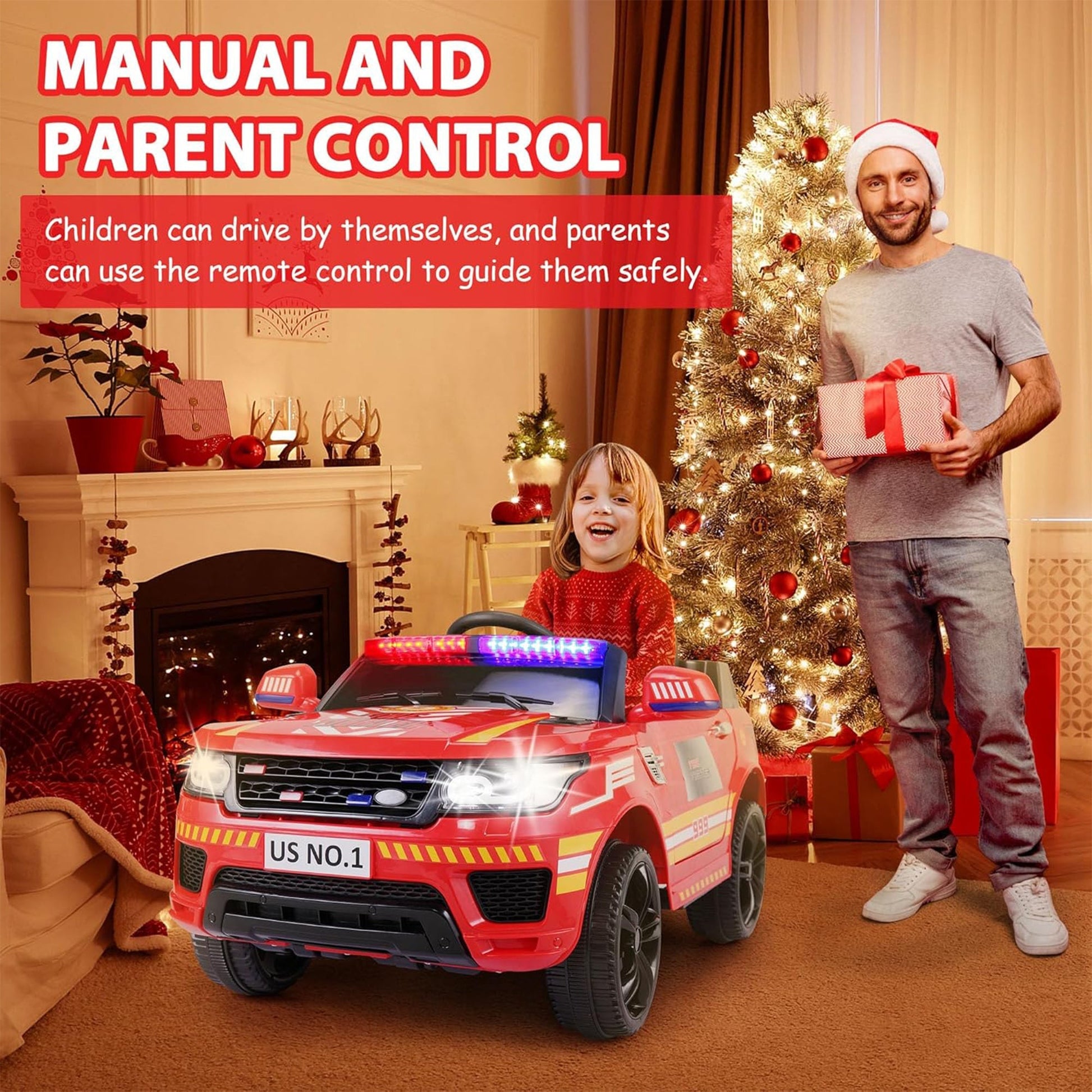 TOBBI 12 Volt Battery Powered Ride On Fire Truck for Kids Ages 3 Years, Red