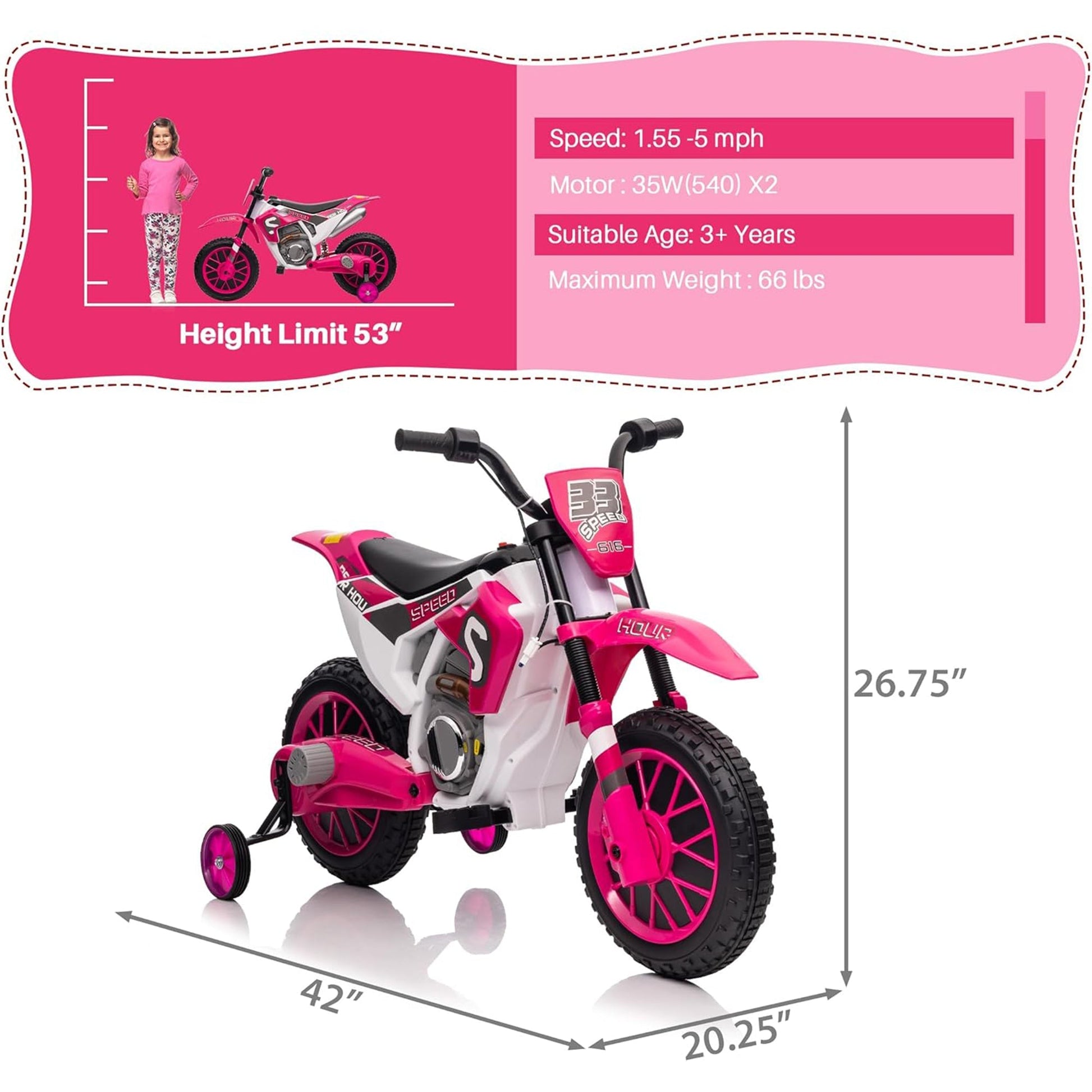 Advanced TOBBI 12 Volt Toddler Motorcycle Kids Dirt Bike with Training Wheels, Rose Pink is the perfect gift for little adventurers.