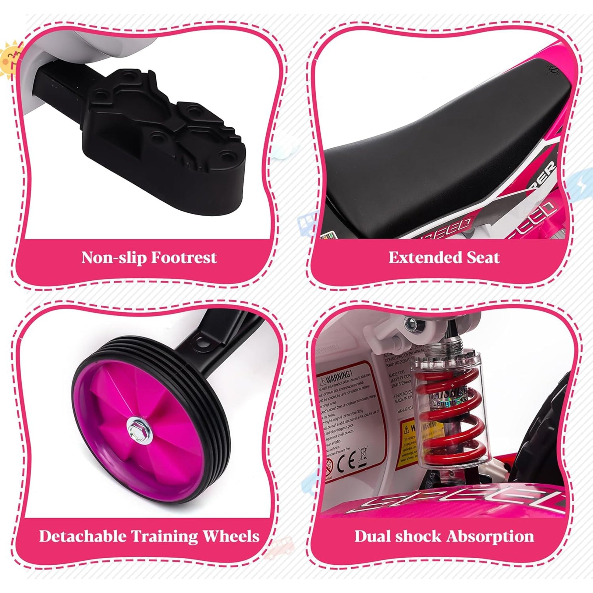 TOBBI 12 Volt Toddler Motorcycle Kids Dirt Bike with Training Wheels, Rose Pink