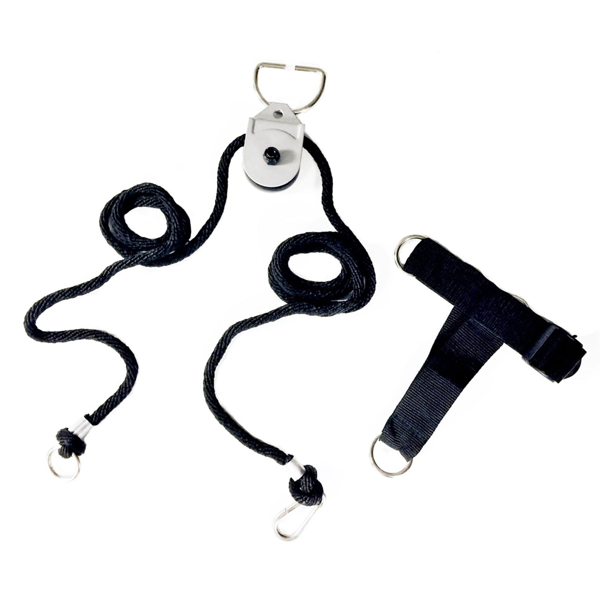 - Features a cable pulley system with embroidered nylon handles, and padded rolling glide board