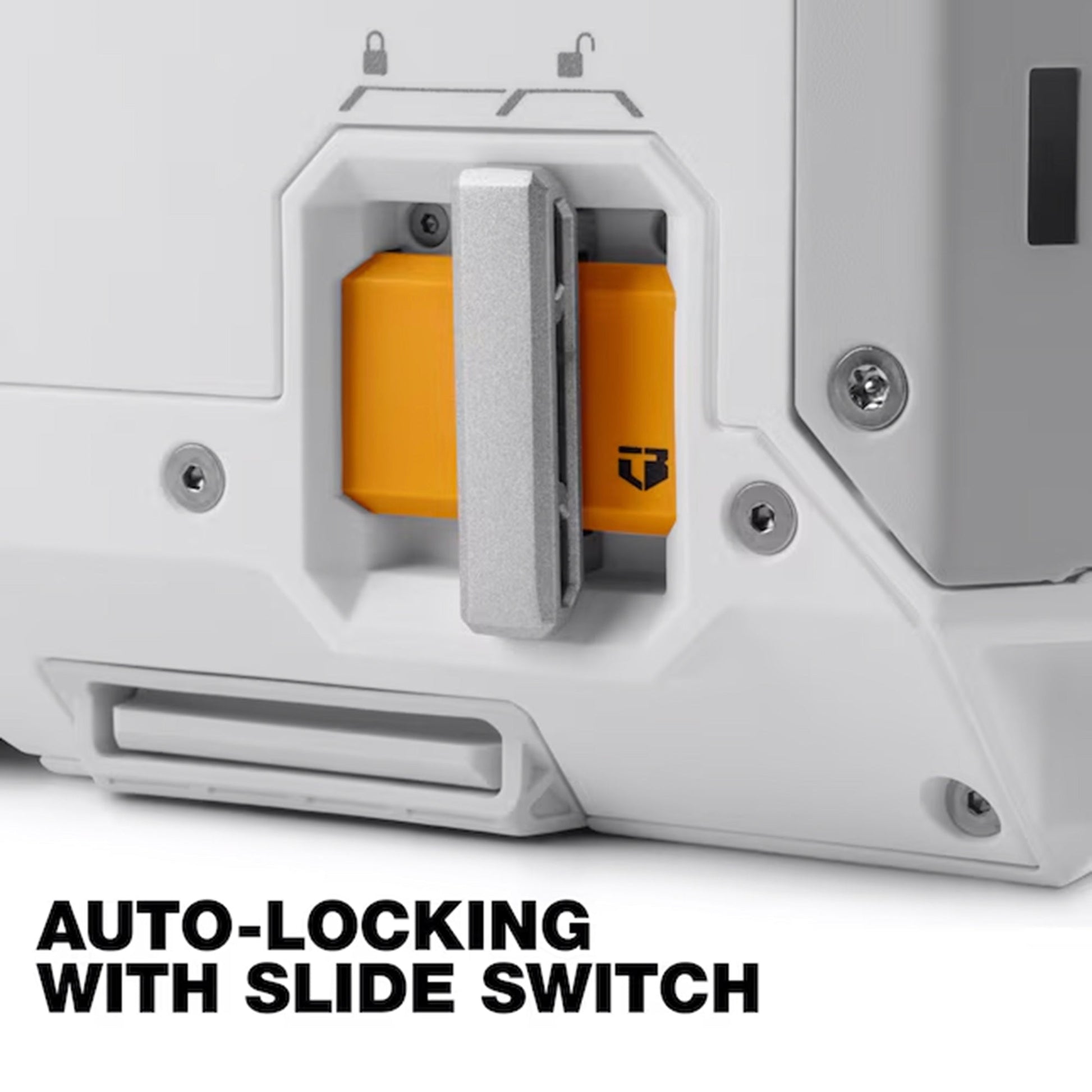 - Auto-locking mechanism engages when the box is dropped into place