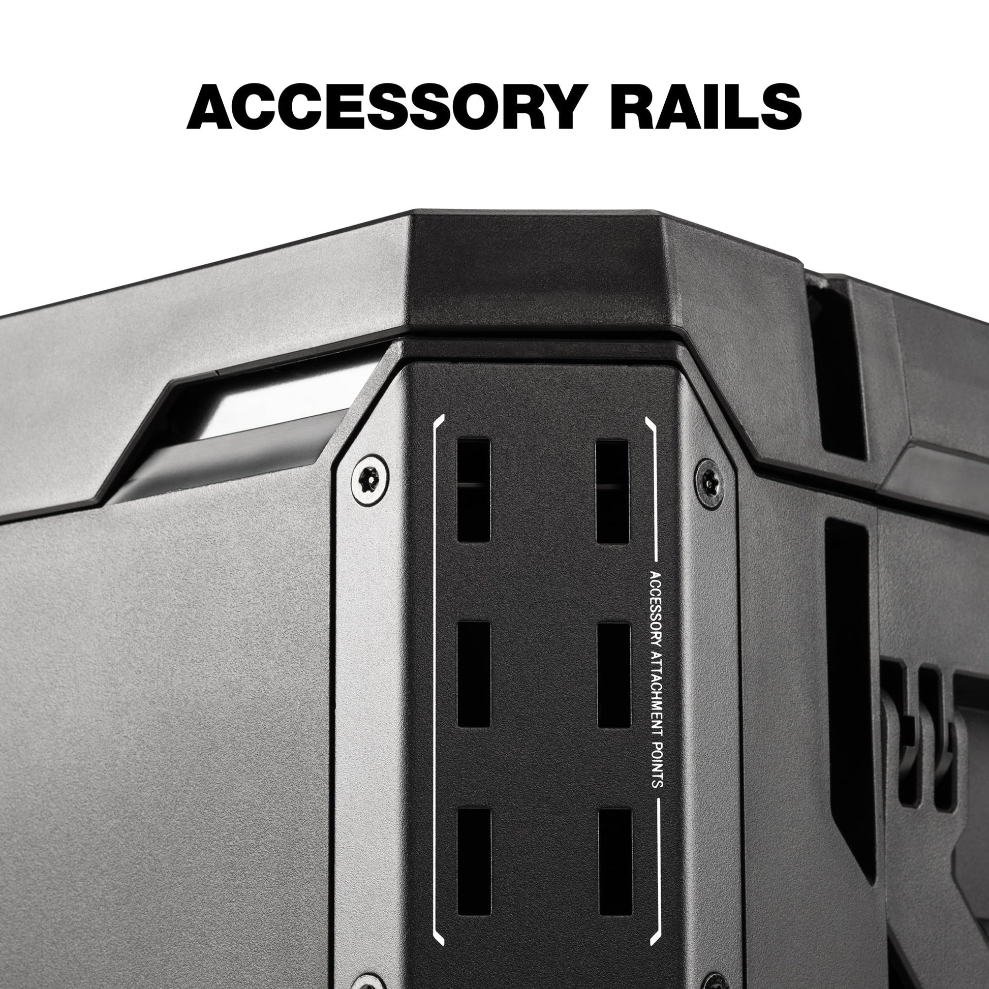 - Comes with accessory rails that allow adding quick-release accessories for a fully customizable solution