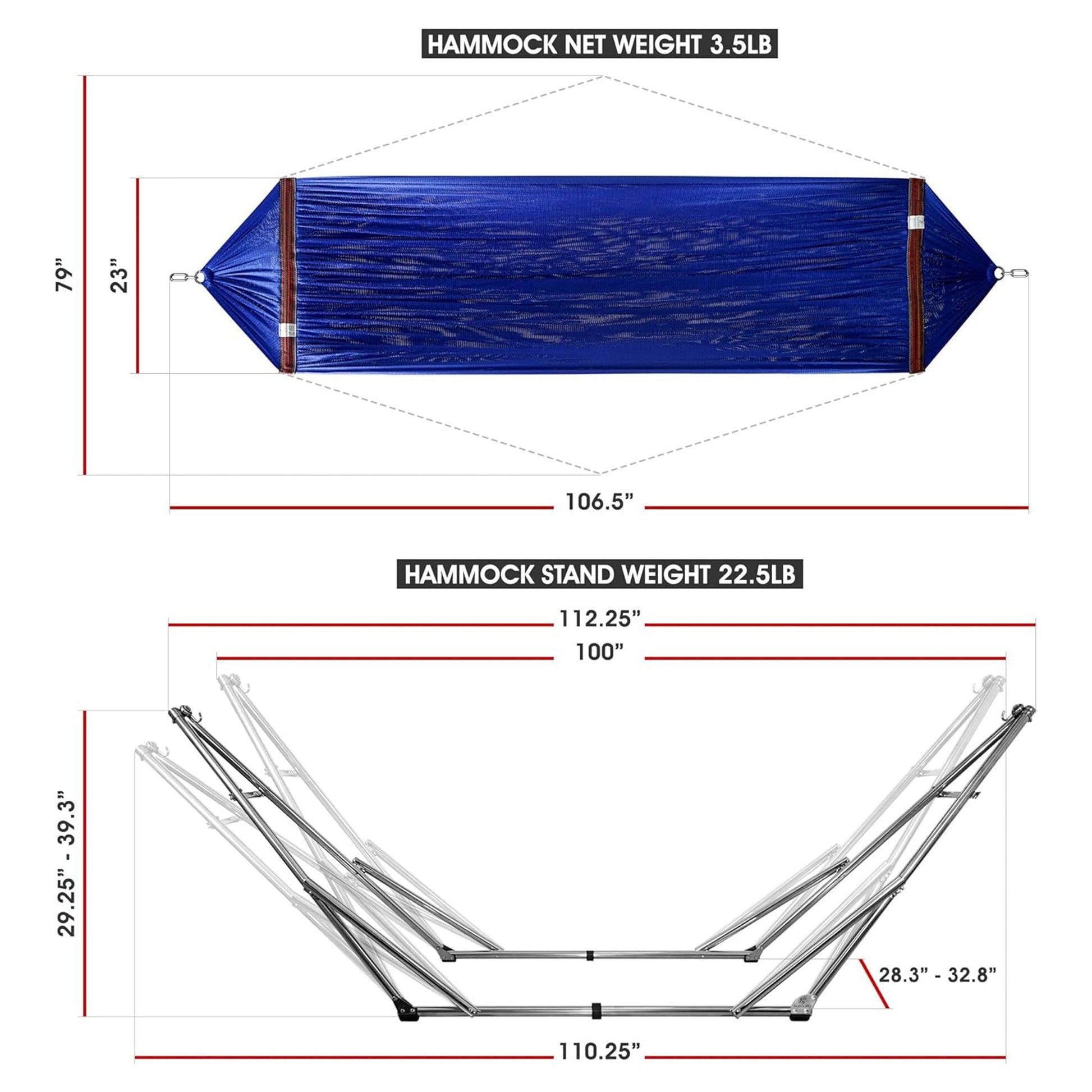 Tranquillo Universal 106" Double Hammock with Adjustable Stand and Bag, Blue