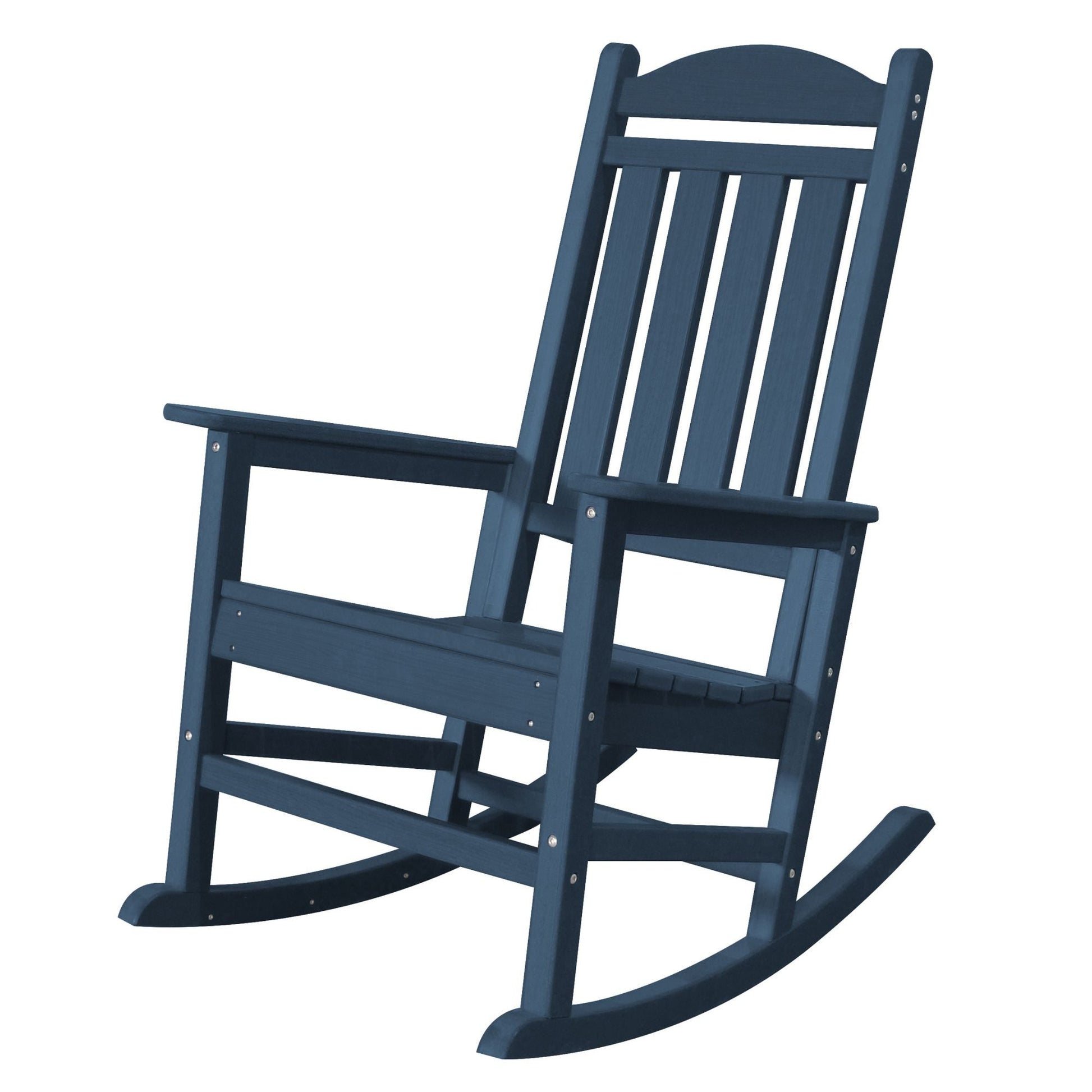 Trapper’s Peak Outdoor Rocking Chair Poly Lumber Grain, Steel Frame, Dark Blue