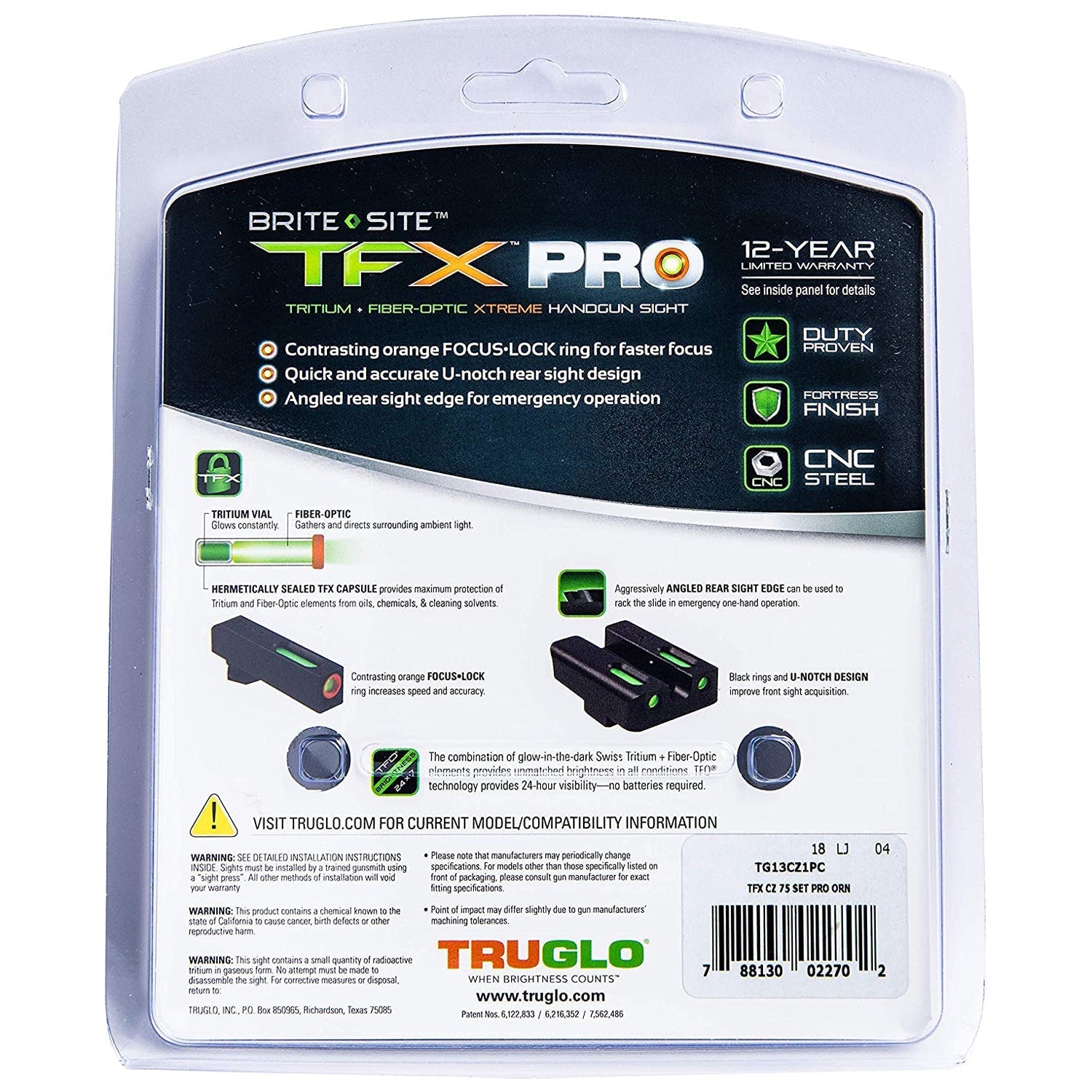 Visibility is key when you're hunting, and having the right sight tools can upgrade your whole experience. The TruGlo TFK Pro Fiber Optic Sight Set is designed with fiber-optics and tritium technology to provide the brightest aiming points and excellent visibility whether your shooting in daylight or low light settings. This TG13CZ1PC model was designed to be compatible with CZ 75 model handguns.