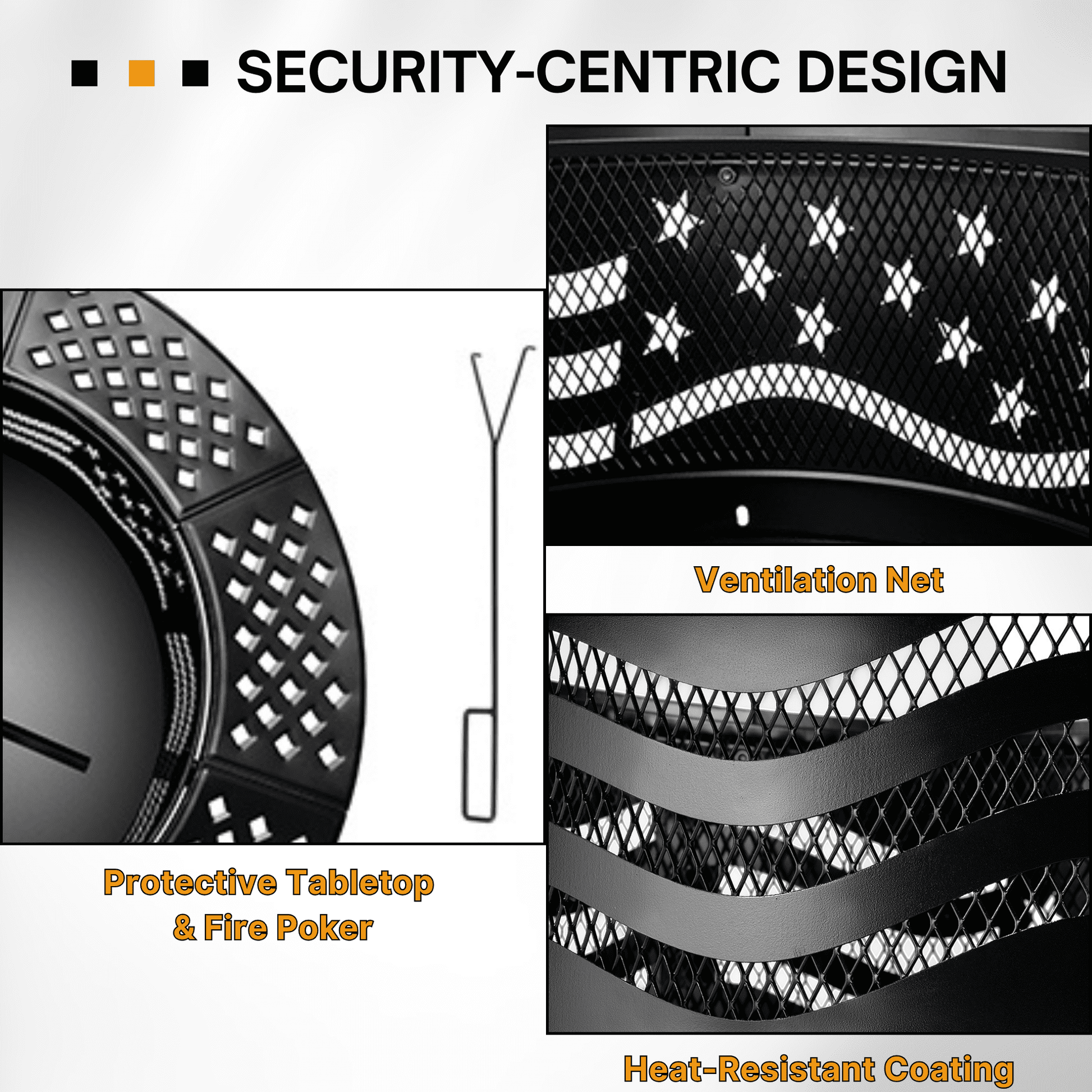 Enjoy healing nights around a warm campfire with the TrumanPick 42-Inch round wood burning fire pit. Made from enduring high-temperature steel, this fire pit features 2 height-adjustable 360° cooking grill grates designed to better regulate the temperature your food needs. One can also be used to bake foods such as meats, vegetables, marshmallows or candies, while the other can be used to insulate. With its traditional wood-burning function, you can start a fire with ease. The firepit also comes with a poker so you can put out fires easily. When the lid is closed, the fire pit turns into a 42-inch metal round table, suitable for 8-10 people to sit and enjoy leisure time around the balcony, courtyard, or garden. Gather your friends around the patio fire pit and create unforgettable memories!