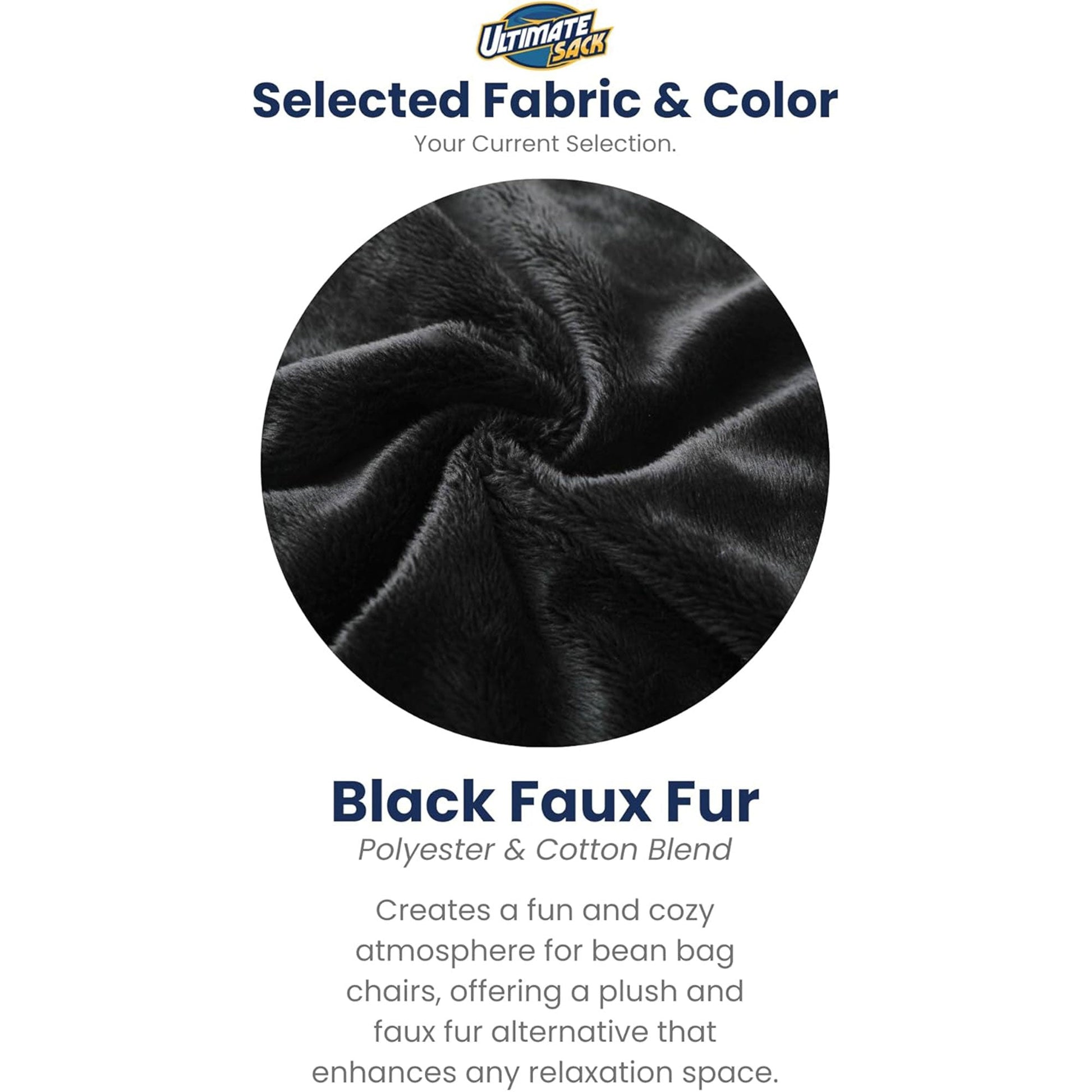 Ultimate Sack 6ft Bean Bag Chair and Footstool, Oversized Lounger, Black Fur