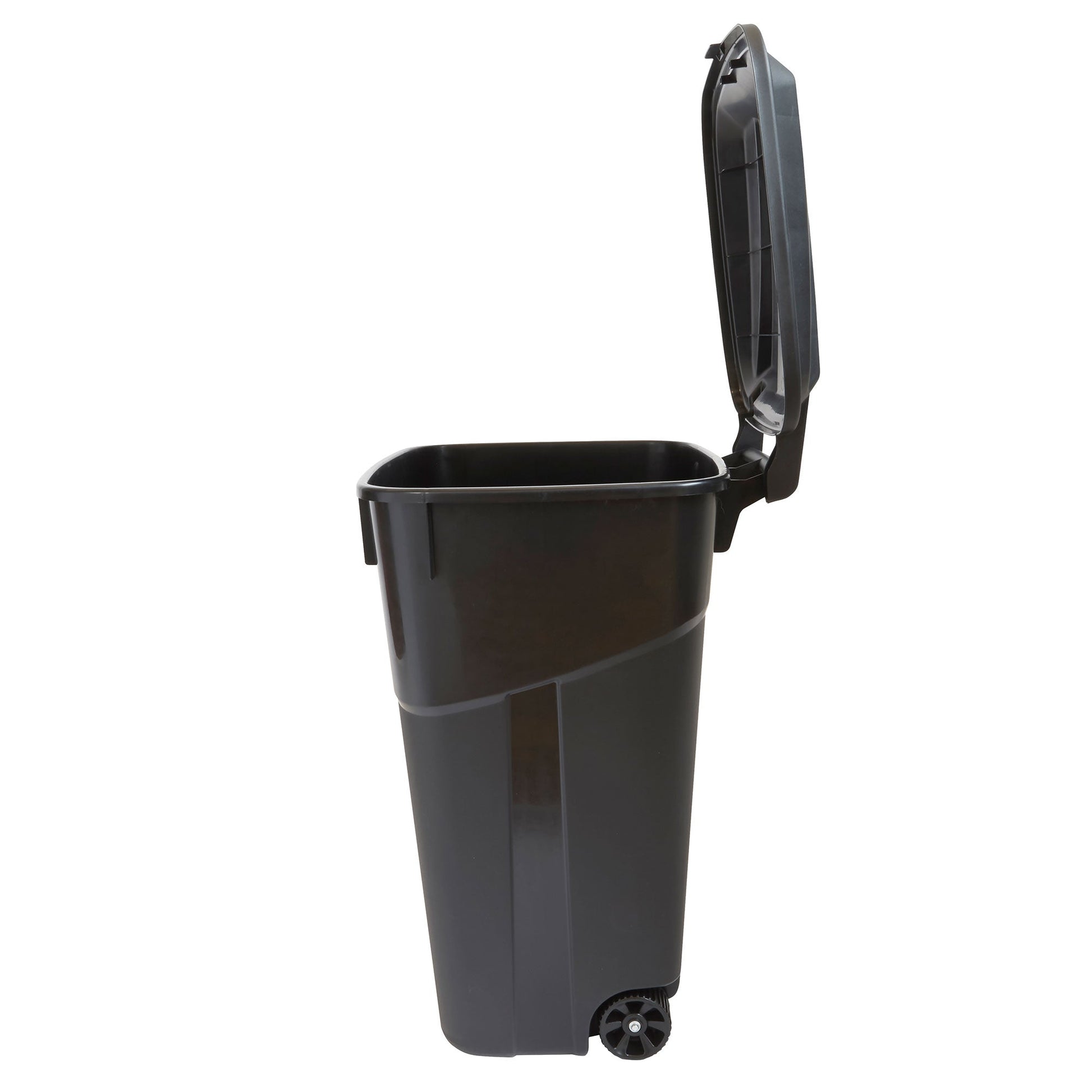 - Heavy-duty wheels and ergonomic handle for effortless transport to curb or storage