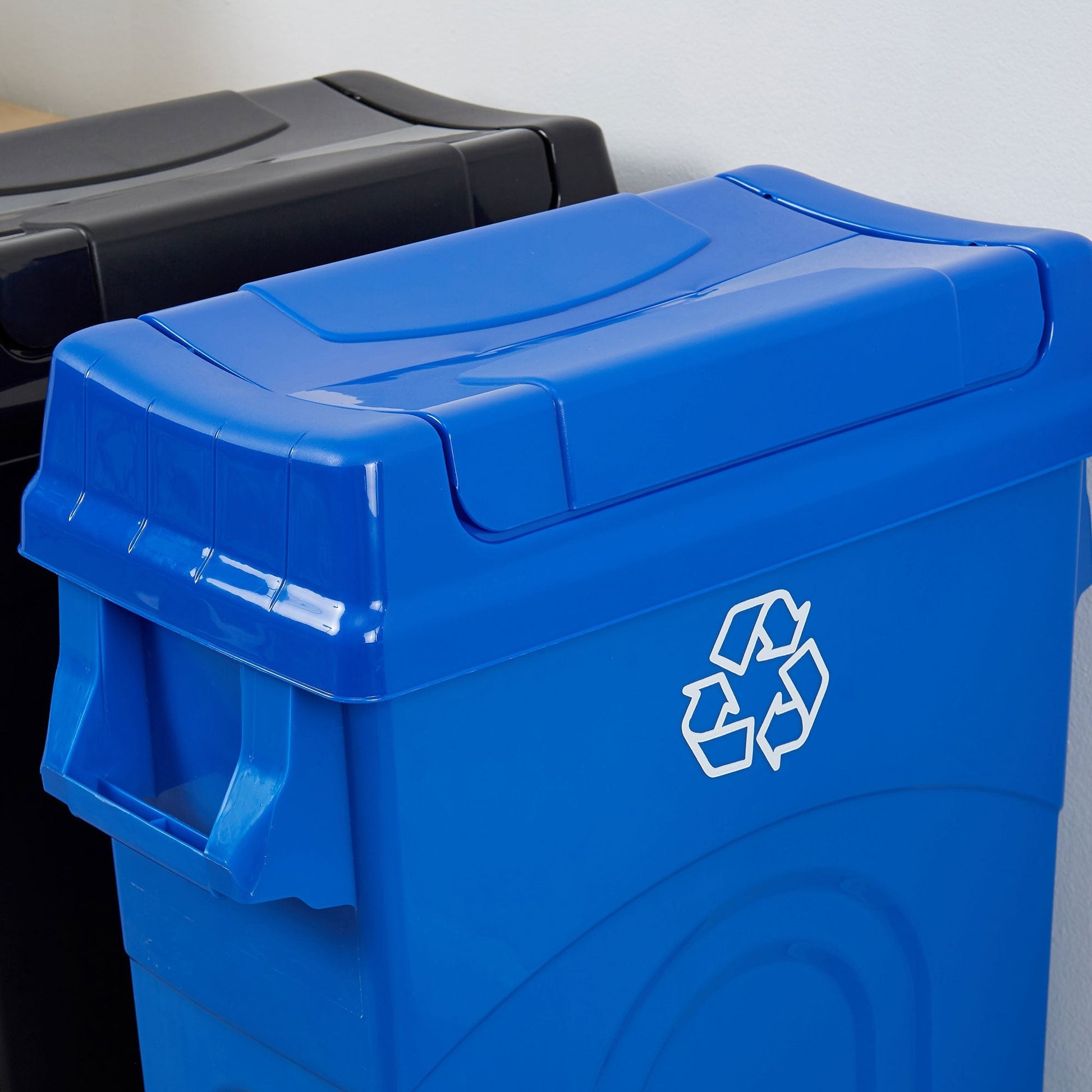 Whether you're seeking a kitchen recycle bin with a lid or a large recycling bin for your garage, this product meets your needs. It's a versatile recycle bin with a lid for the kitchen or any other room in your home. The United Solutions 23-gallon trash can with lid is a versatile, space-saving, and efficient solution for your recycling needs. Its large capacity, easy-to-use swing lid, and slim design make it a suitable addition to any home or office setting.