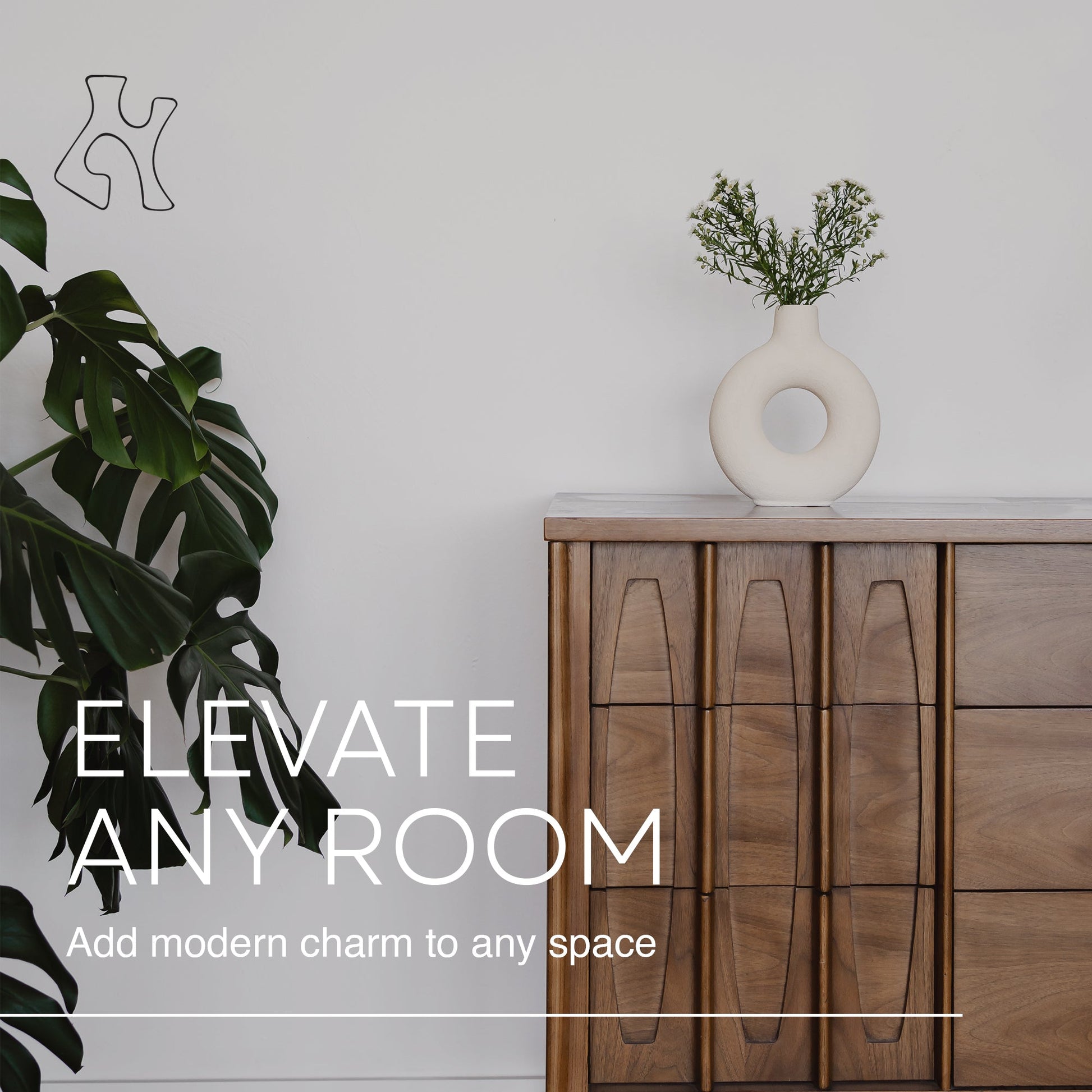 Add your essence to any space with the Villa Moda Oona Ring Vase, a true fusion of modern elegance and functionality. Crafted from premium ceramic, this trendy compact vase features a matte finish and a geometric design that exemplifies contemporary sophistication. It makes a striking centerpiece for a dining room or bedside table and is perfect home decor for an entryway display or decorative shelf. Whether you gravitate toward modern decor, boho decor, or minimalist decor, it will instantly transform any room into a stylish haven.