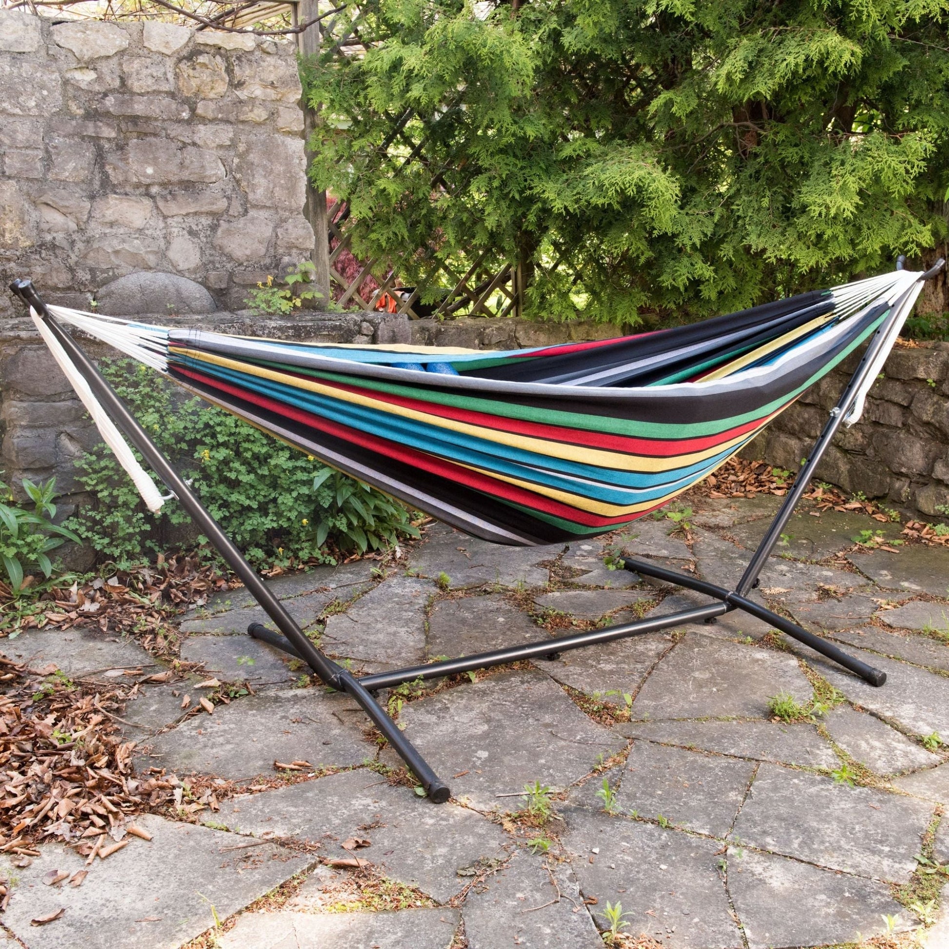 Vivere Double Cotton Hammock, Comfortable Daybed with Steel Stand, 9', Rio Night