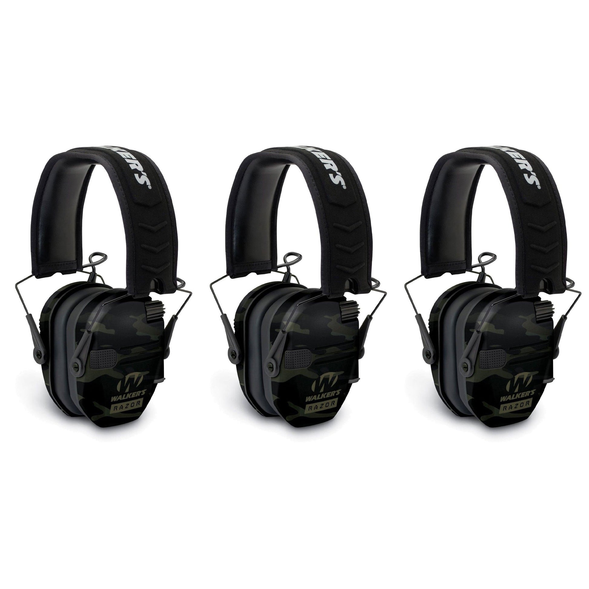 Walkers Razor Slim Electronic Ear Muffs with NRR 23 dB, Multicam Gray (3 Pack)