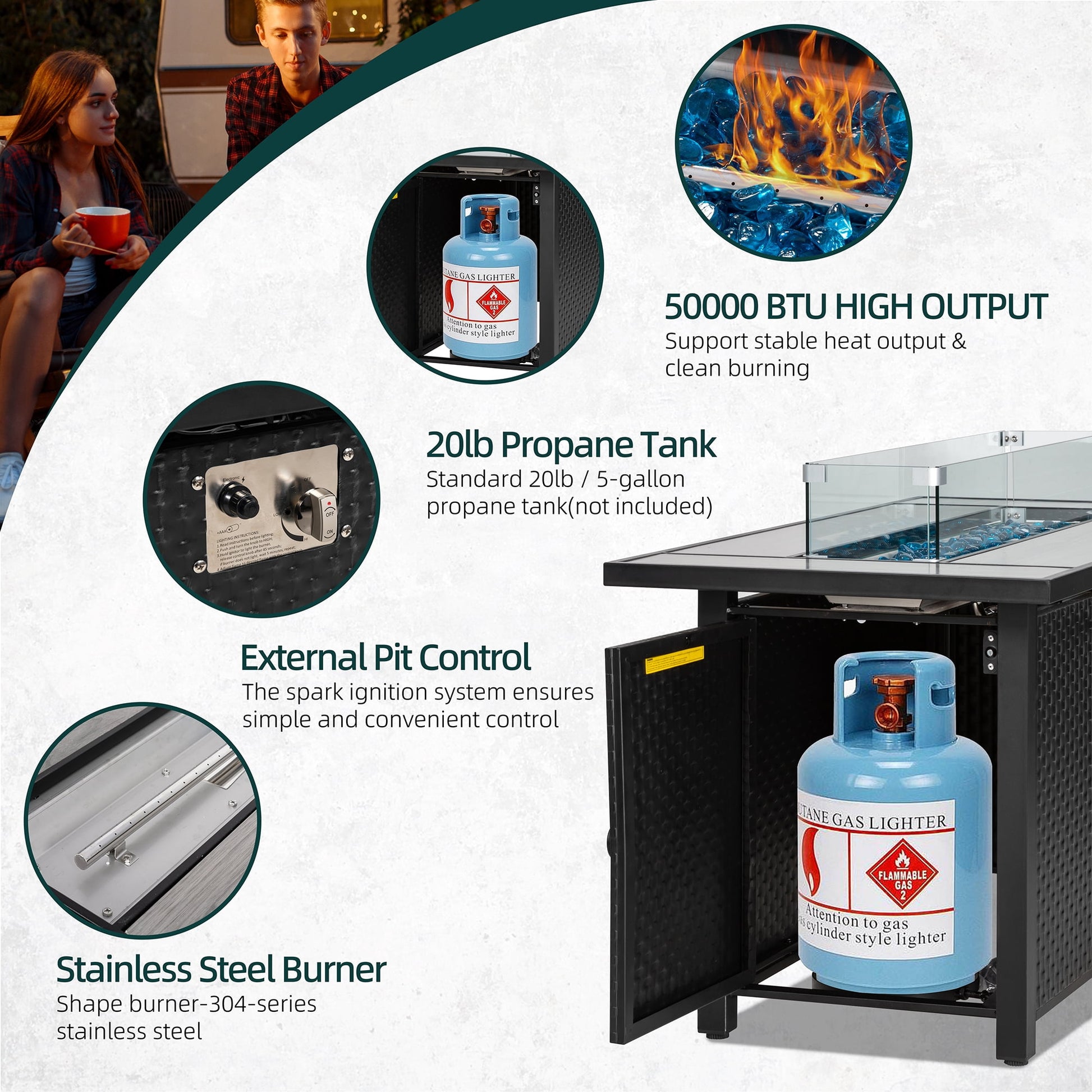 Walsunny 45" Propane Fire Pit Table 50,000 BTU Steel Gas Fire Pit with Removable Lid & Waterproof Cover and Tables