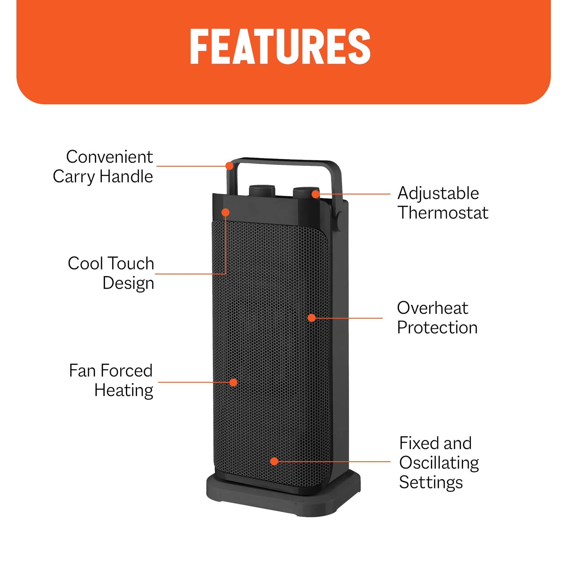- Compact ceramic heater provides fast and efficient warmth in any room
