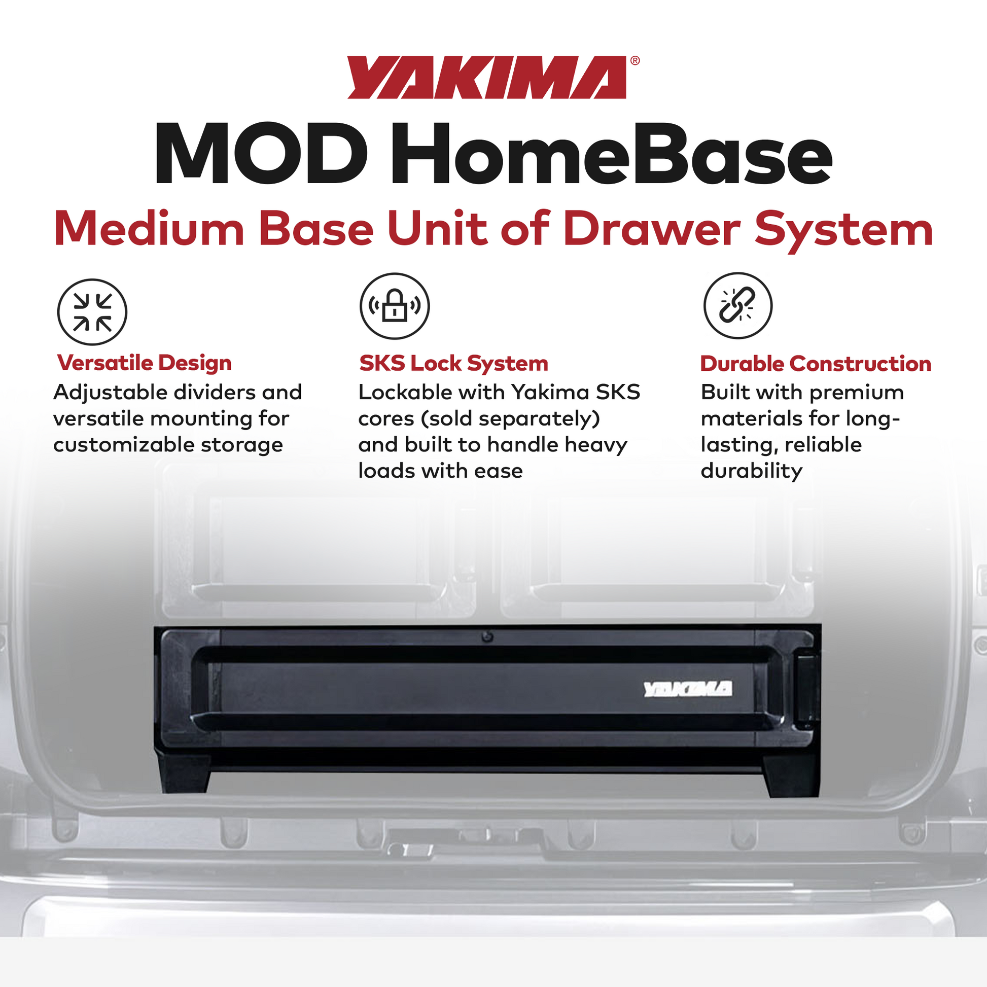 Upgrade your storage game with the Yakima MOD HomeBase Base Unit of Drawer System, where durability, functionality, and versatility redefine your on-the-go storage experience.
