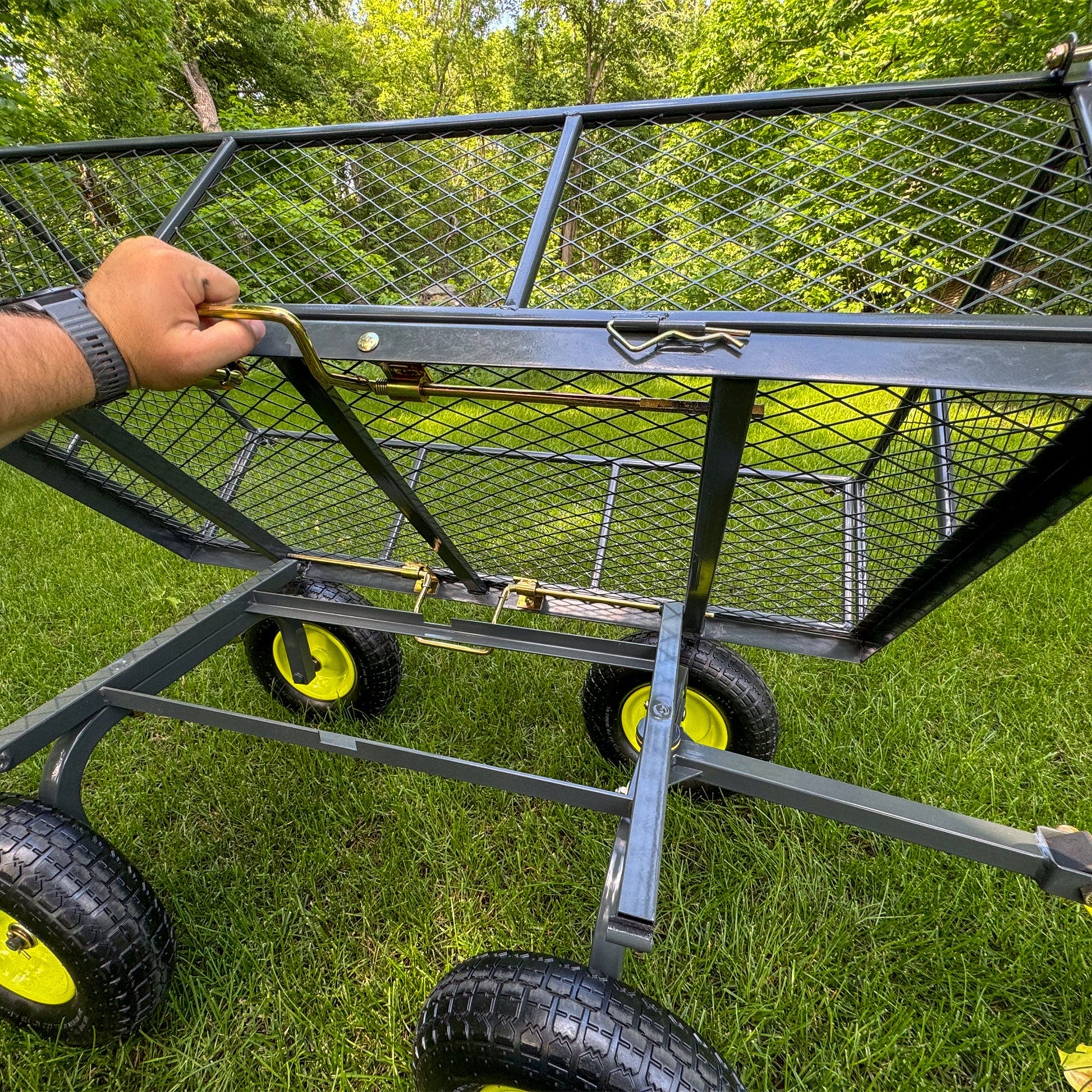 - Versatile Use: 3-in-1 functionality as a dump, utility, and yard wagon; sides fold down or detach for flat cart use